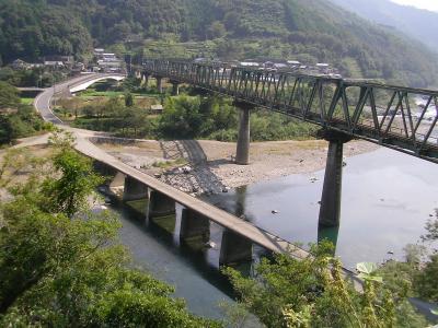 三島にある四万十川中洲の西側に架かる沈下橋で、昭和41年の建造。すぐ傍をJR予土線の鉄橋が通っており、運が良ければ鉄橋を走る列車と沈下橋の撮影ができます。上流には三島キャンプ場があります。- 旅行時期