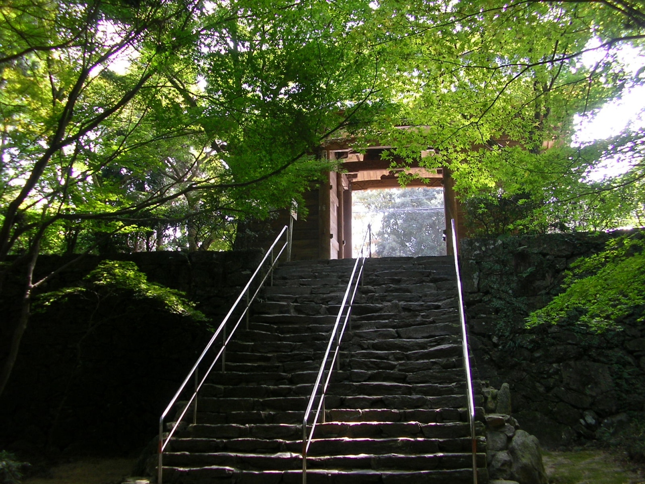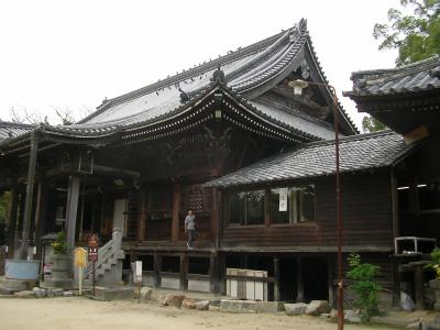 高松市の郊外、住宅街の中にあります。山門を入るとすぐ右に庫裏があり参道の正面奥に本堂、その右手に大師堂、左手に稲荷社が建っています。本堂前に薬師如来を祀る石の小さな祠があり、この祠に頭を入れると境地が開けるという言い伝えがあります。一方、悪いことをしていると頭が抜けなくなると言われています。これは“地獄の釜”と言われており弘法大師が戒めのために作られたそうです。私は、頭が抜けなくなったら困るので見るだけにして頭を入れませんでした。自信のある方はどうぞ。