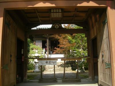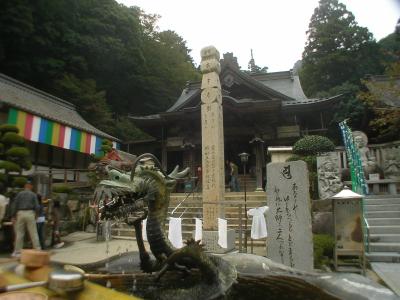 山門をくぐると下りの石段の後、自然石を重ねた上りの石段が続き、途中右側に大師堂、左側に庫裏が建っています。石段を上りつめた正面に本堂があります。本堂前の回廊はコの字型 に“万体観音堂”があって全国各地の人から奉納された観音様の小像が沢山並んでいます。