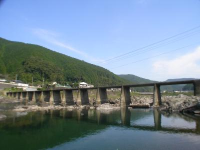 四万十川の風景のシンボルである“沈下橋”は、洪水など大水の時には川に沈んでしまうように設計された欄干のない橋のことで、他県では“潜水橋”とか“もぐり橋”と呼ぶところもあるそうです。