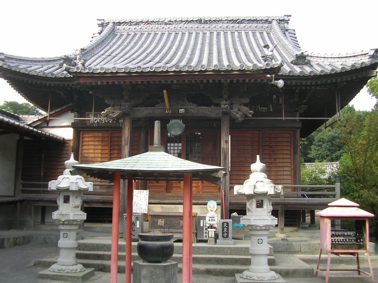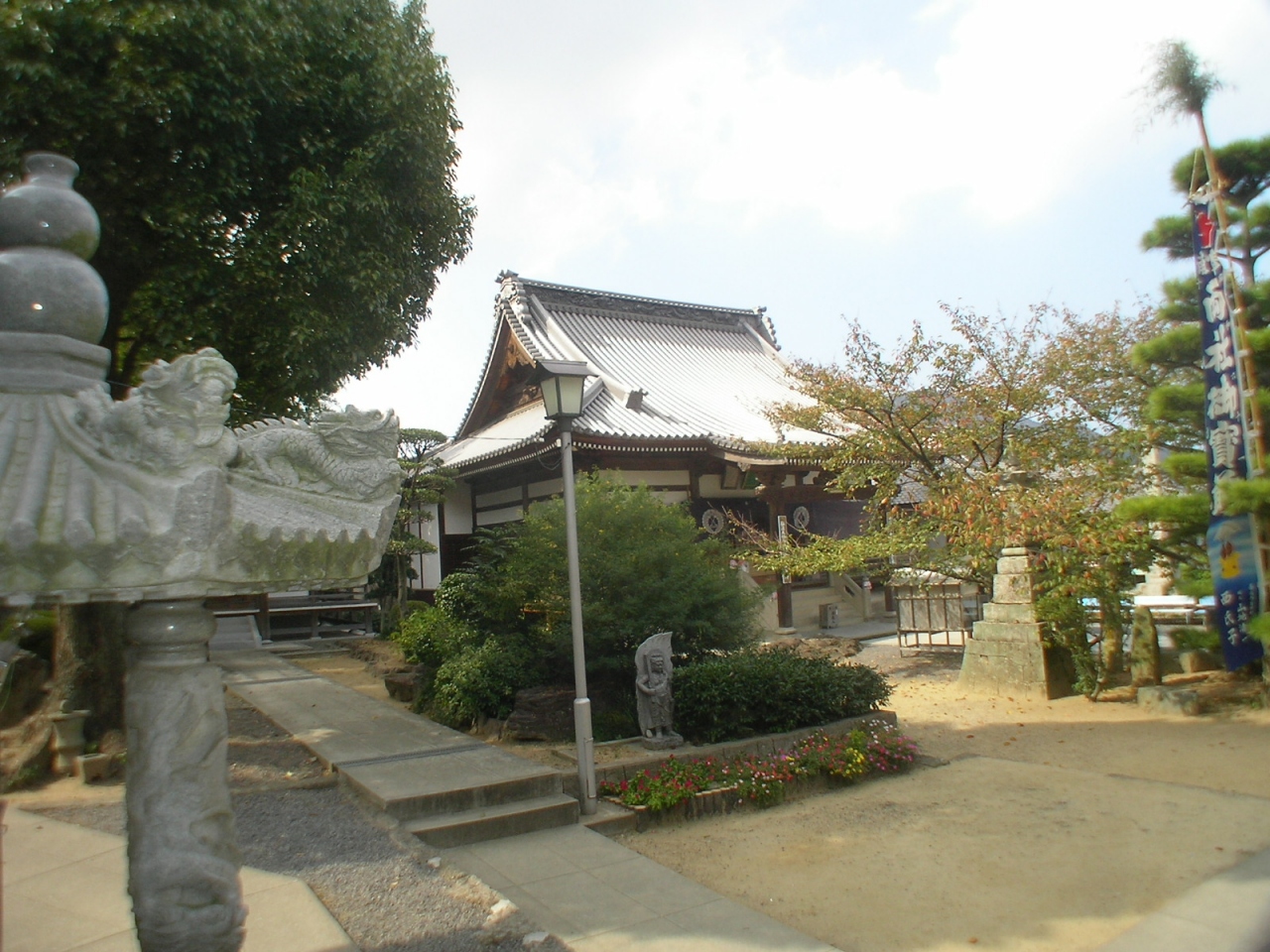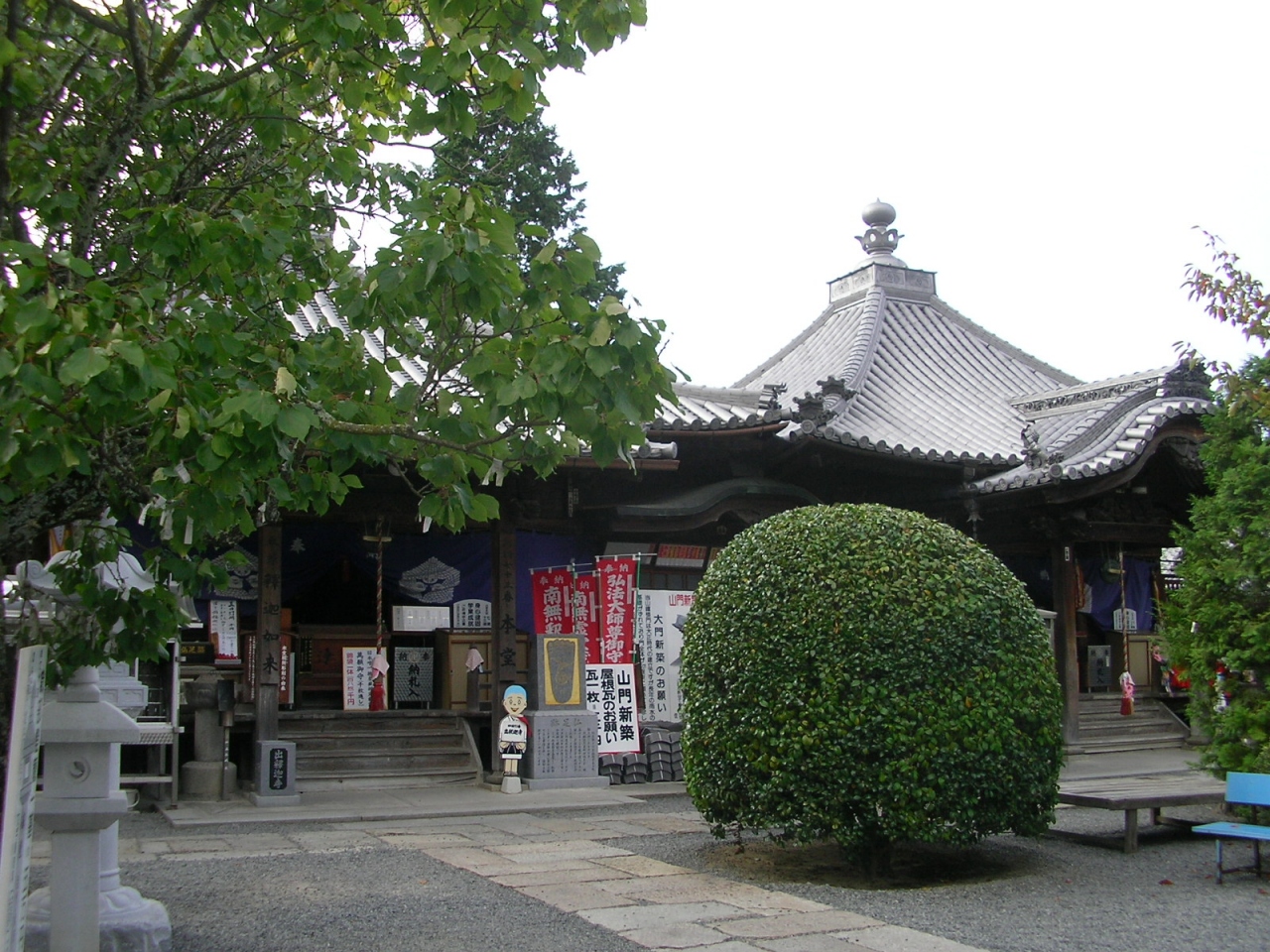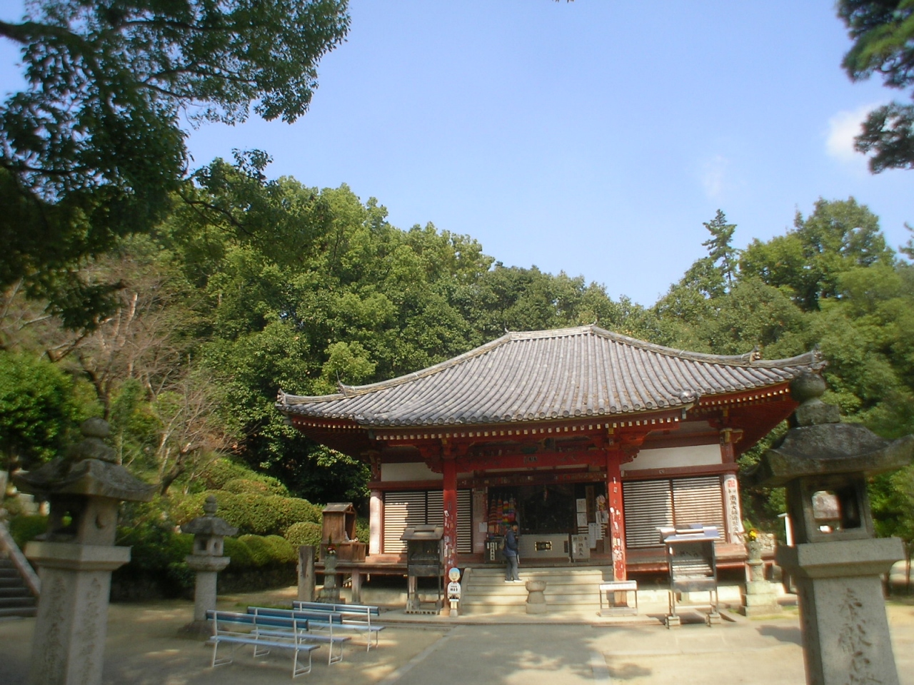山門をくぐると右手木立ちの中に朱塗りの美しい本堂があり、本尊を安置した厨子とともに国の重要文化財に指定されています。左側に庫裏、納経所がありますが、納経所は神恵院と2力所の共同になっています。一生懸命巡礼していると二箇所同時にお参りできたことで、何か得したような気分になりました