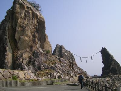 高さ数mの直立する大小の二体の岩が注連縄でしっかりと結ばれており「鹿岡の夫婦岩」と呼ばれています。日本各地に“夫婦岩”がありますが、ここの夫婦岩は結構迫力があります。