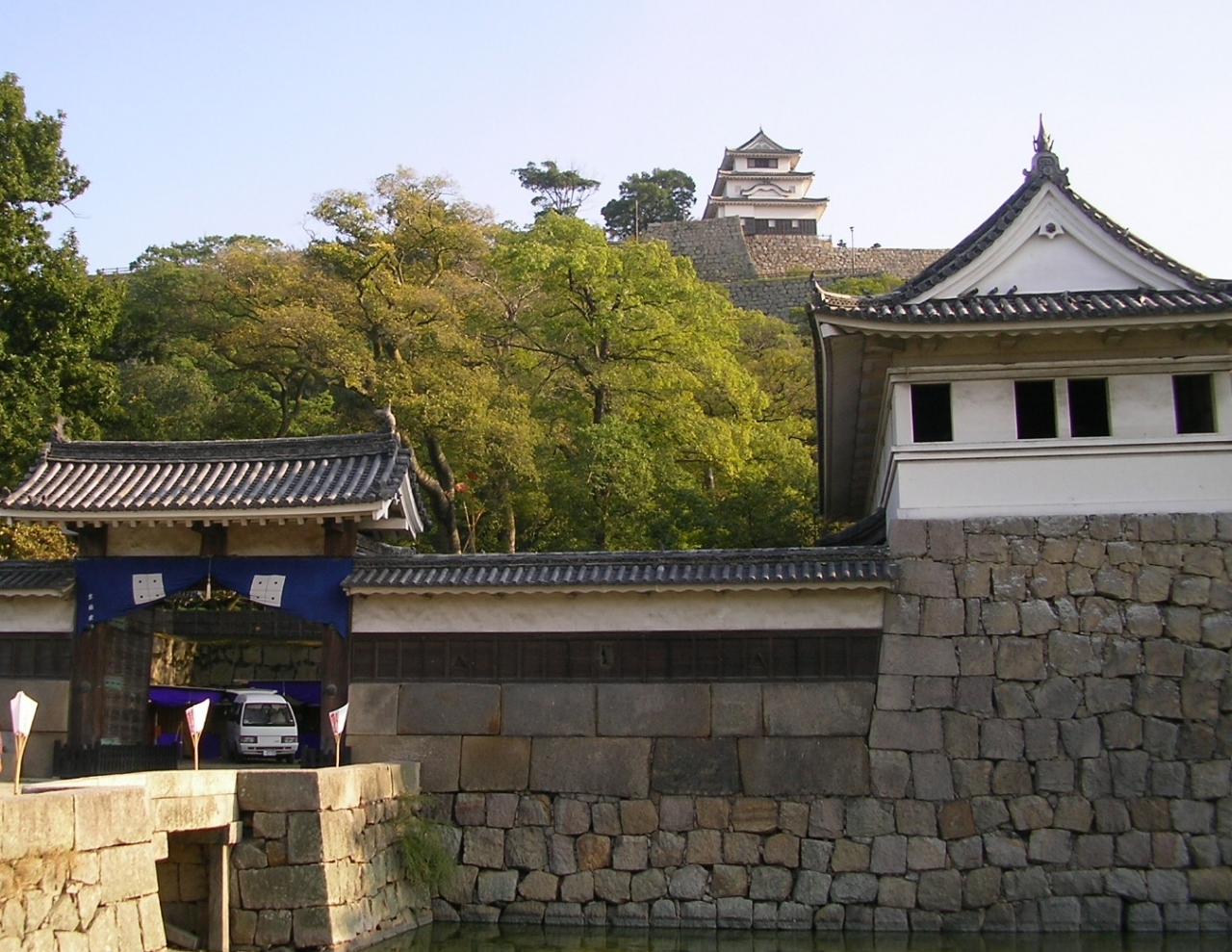天守閣は小ぶりなものですが、全国に現存する『木造天守十二城』の一つで、内堀から天守にかけて積み重ねられた石垣は、”扇の勾配”と呼ばれる特長的で見事な曲線を描いています。天守閣(入場料200円)からは、丸亀の町並みや讃岐富士、瀬戸内海が見渡せます。- 旅行時期