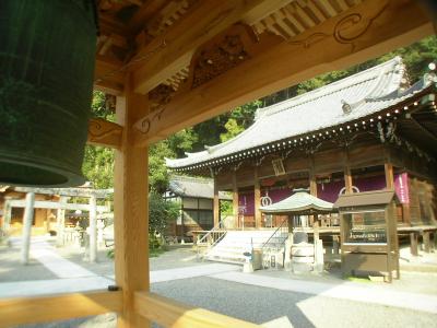県道から石段を上り、木々に覆われた境内に入るとすぐ右に鐘楼、左に庫裏が建ち、正面に本堂、右側に大師堂が並んで建っています。