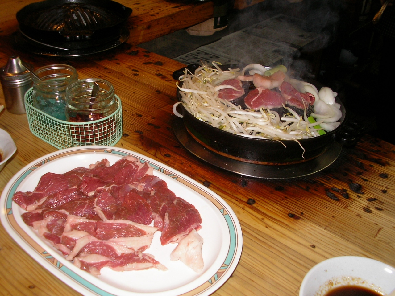 すすきのの通りに面した分かりやすい場所にあります。こじんまりとしたお店で1階と2階がありますが、2階のカウンター席で頂きました。ジンギスカンモモ肉やホルモン、羊のソーセージなどを頂きました。ここのお店はサホーク種の生肉を使っているそうで、お肉は柔らかく、羊肉特有の臭みがまったく無く、大変おいしかった。二人で4000円足らずでした。