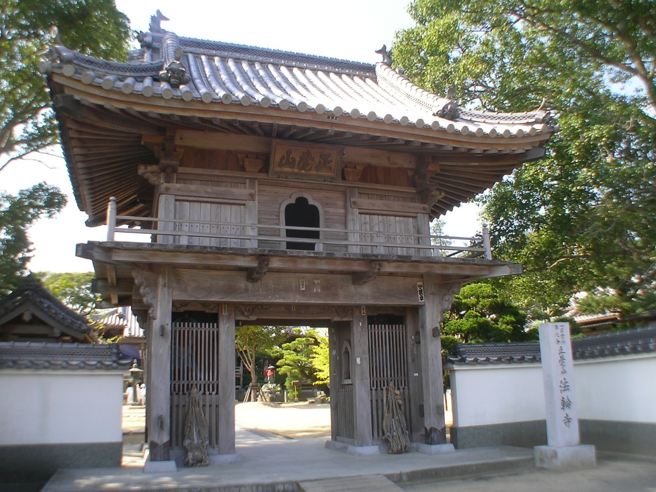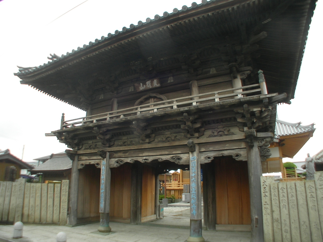 四国八十八ヶ所霊場の第十六番札所です。国分寺と同じく天平年間に聖武天皇の勅願寺として建立されたと伝えられています。道路に面した和様重層の堂々とした山門を入ると、こぢんまりした境内の左手に手水場が、左に夜鳴き地蔵尊があり、正面奥に本堂が建つています。子供の夜泣きを止めてくれる夜泣き地蔵尊があり、ご利益をあずかったお礼にと、何枚ものよだれかけが奉納されていました。
