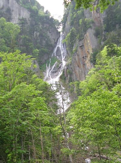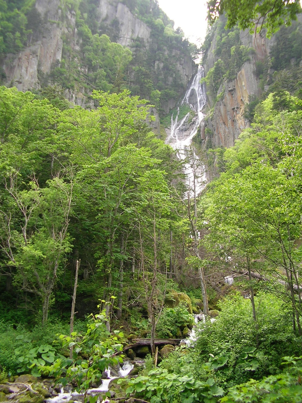 層雲峡の温泉街からから車で5分くらいのところに駐車場があり、そこからすぐに観えます。高さ120mから細く繊細な白糸のように優美な姿で幾重にも分かれて落ちてくる女性的な滝で、雌滝とも呼ばれています。となりにある「流星の滝」とあわせて「流星・銀河の滝」として日本の滝百選にも選定されています。滝の目の前にはお土産物屋さんとトイレがあります。駐車場から背後の山を20分ほど登ると「双瀑台」の展望台があり、流れ落ちる2つの滝を同時に観ることが出来ます。