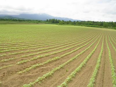 上川市街から国道39号線もしくは道道849号線を5~6分走ると“大雪アンガス牧場”の案内看板が見えてきます。その案内看板のとおりに進んで行くと牧場が広がり、展望台入口の案内板と駐車場があります。展望台へは駐車場から歩いて1~2分で、そこからは牧場と大雪連邦が見渡せます。展望台入り口の手前には北海道らしい広大な畑が広がっていました。
