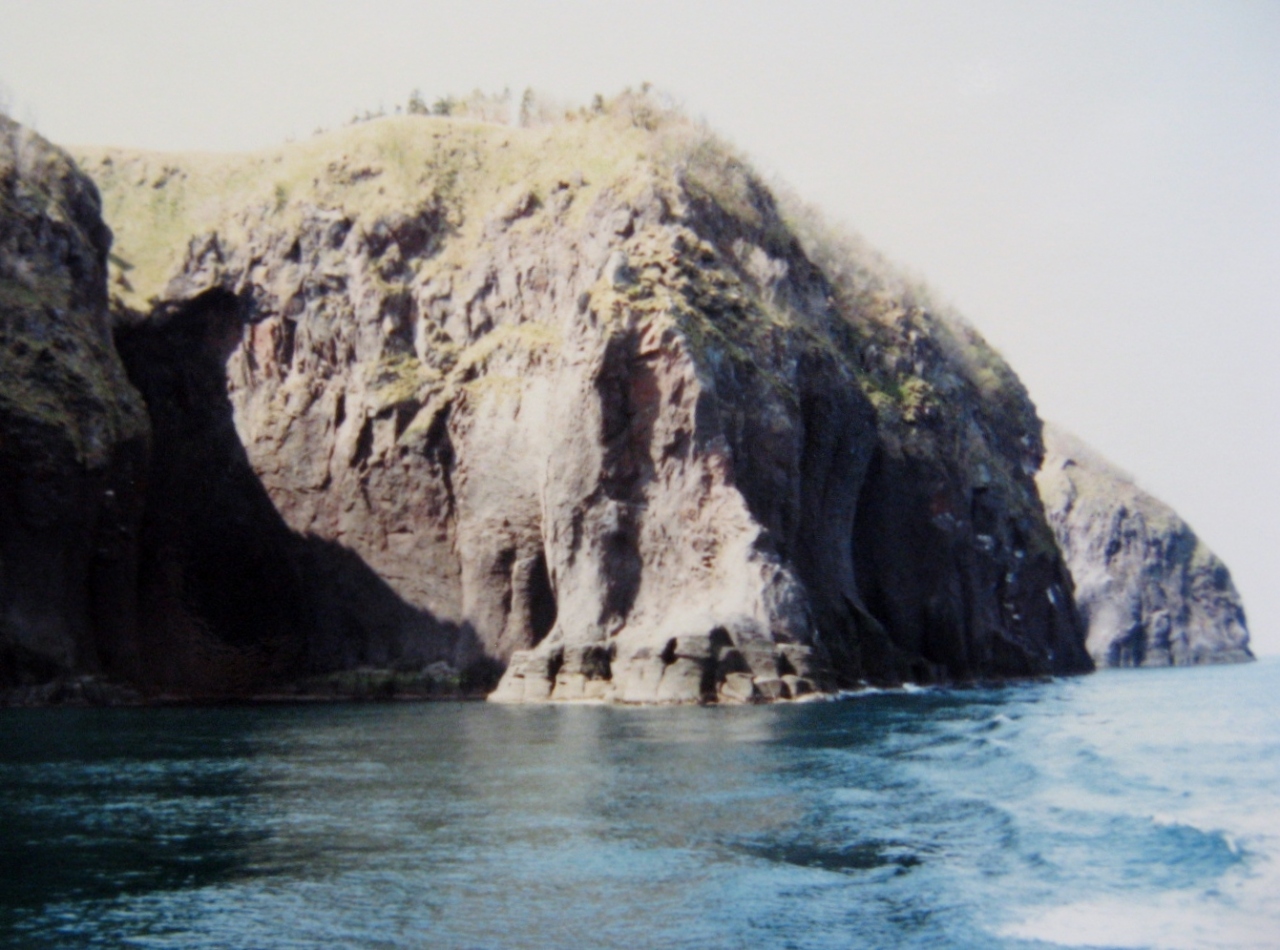知床半島は西側(ウトロ側)、東側(羅臼側)とも半島の中ほどで道路が行き止まりになっているため、半島の先端である「知床岬」には、陸路で行くことは出来ません。ウトロ港より出ているクルーズ船に乗っていくことになりますが、知床岬航路と硫黄山航路のコースがあり、知床岬航路に乗らないと先端の知床岬へは行かないので注意が必要です。6月初旬に行ったのですが、天気が悪く景色はもう一つでしたが、断崖や海に直接落ちる滝、遠くに雪を頂いた知床連山など、最果ての地という雰囲気タップリのところでした。