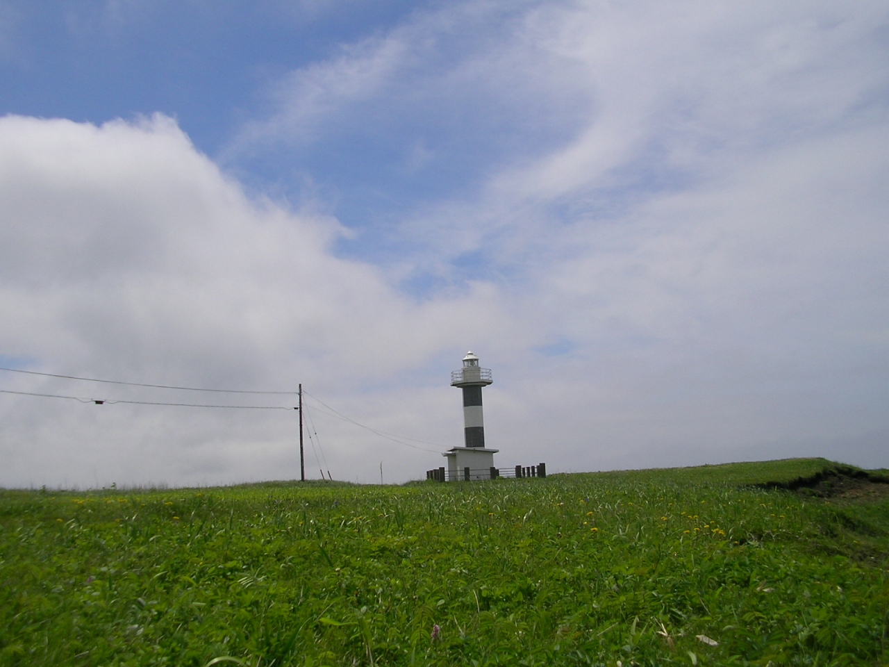 根室から道道35号線を車で走って約15分ほど、納沙布岬に行く途中にある小さな岬です。風力発電の風車が2基あるのが目印です。風車の手前に“ノッカマップ岬灯台”の案内板があります。そこからは、灯台までの約500mは未舗装の悪路のため自動車で進入するのは困難です。花が咲き乱れる広い草原に、白と黒に塗り分けられたシックな装いの灯台、遠くに国後島も見えます。聞こえるのは波の音と鳥のさえずりだけ。観光客はまったくいませんので、絶景を独り占めです。土産物屋もトイレもありませんが、観光客の多い、納沙布岬より気に入りました。
