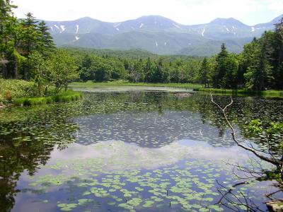 知床五湖はどの湖からも知床連峰の山々が見えますが、特にこの二湖からの眺望が優れているので多くの観光客がカメラを構えて撮影していました。7月の初めに行ったのですが、知床連山には雪が残っており、天気もよかったので素晴らしい写真をとることが出来ました。