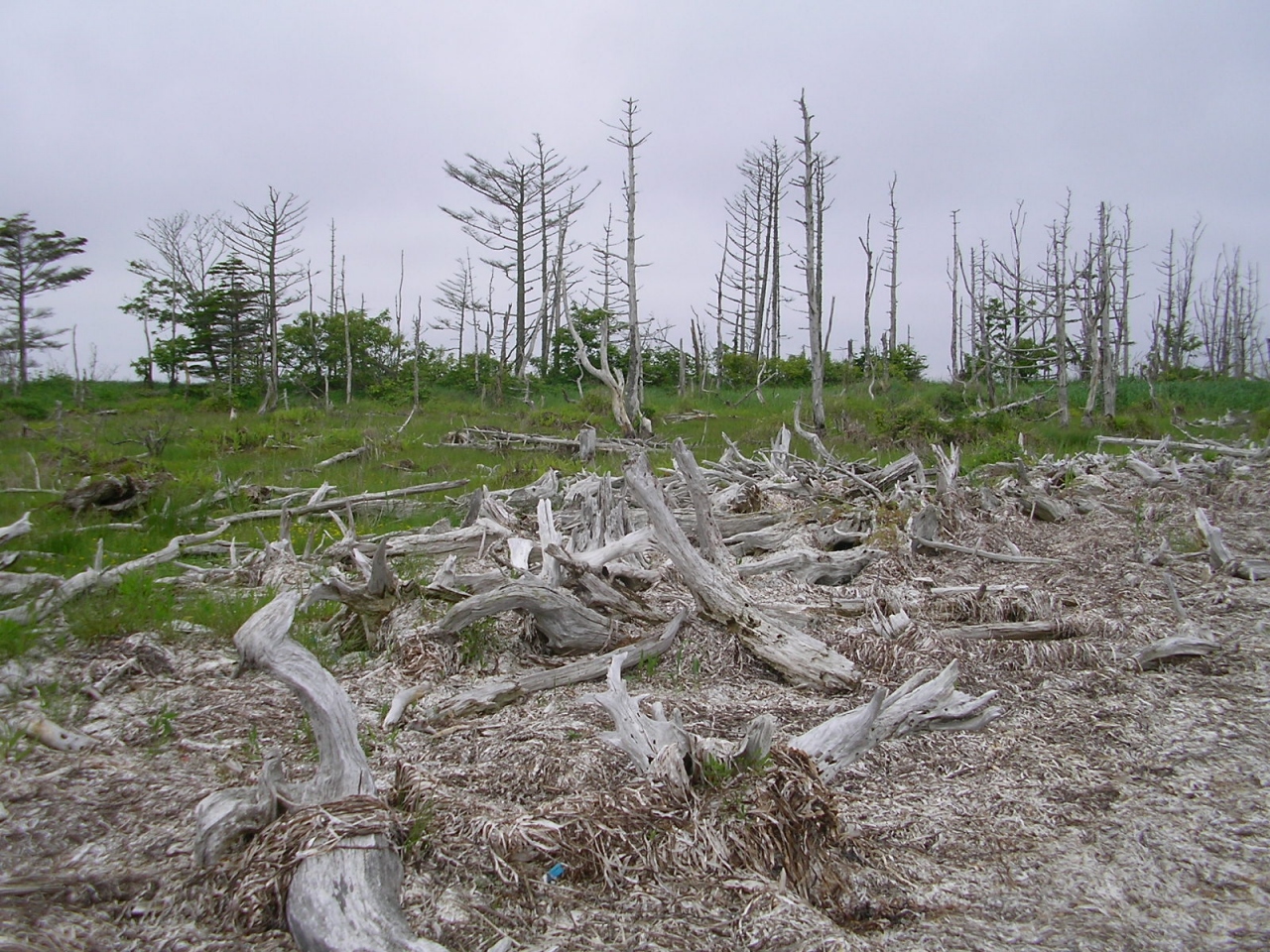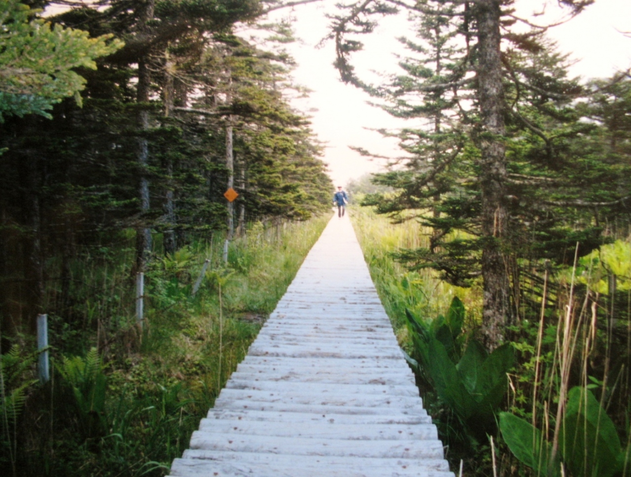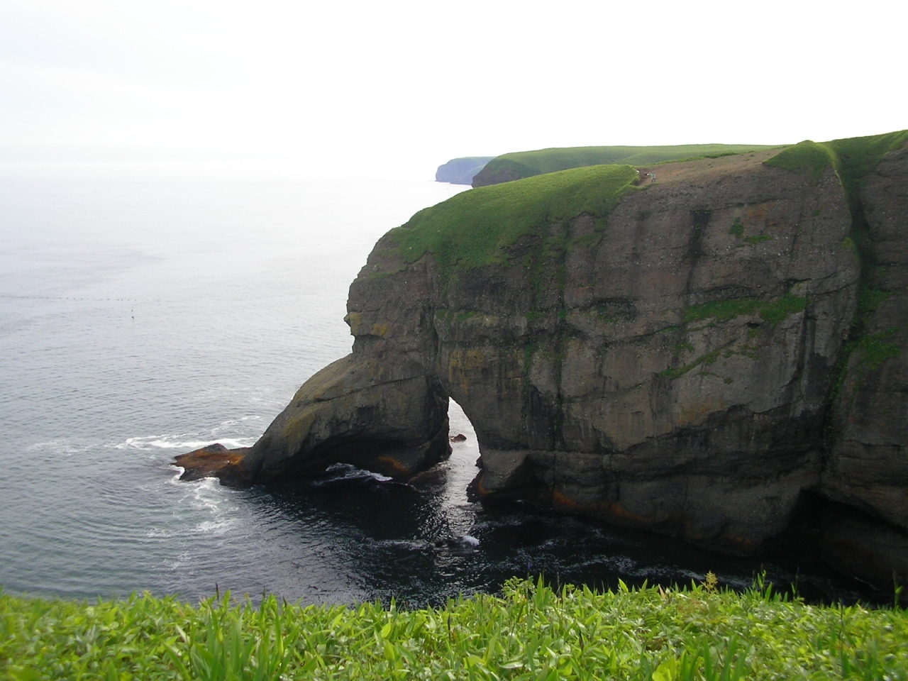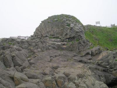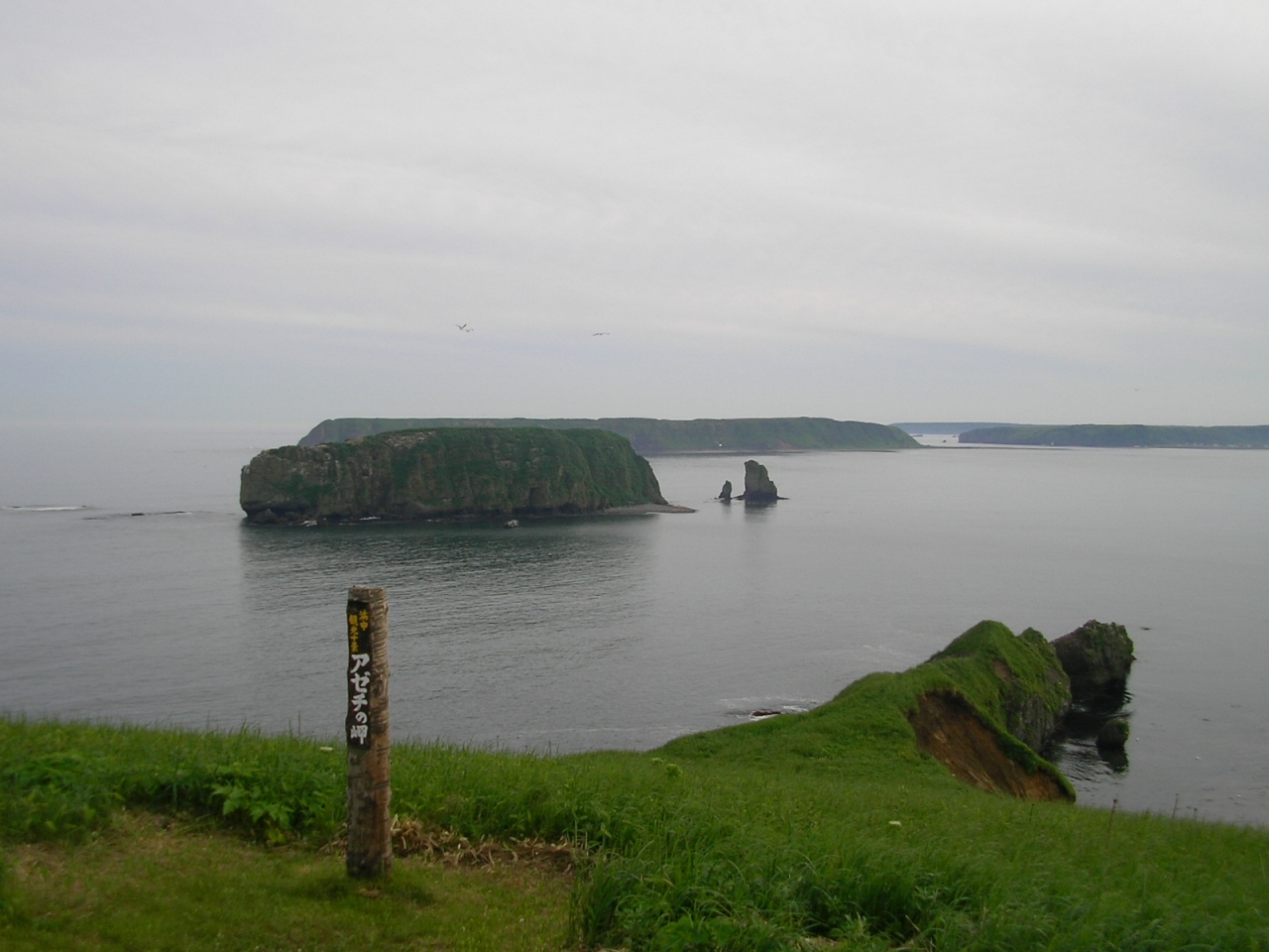 「落石岬」は、根室市街から、道道142号線と1123線を通って、車で1時間あまり、太平洋に突き出た小さな岬です。北海道では、ここだけで自生する国の天然記念物のサカイツツジの自生地として知られています。車道終点から林や原野の中を歩くこと20分ほどで岬の先端に出ます。途中の湿地帯では1メートルほどの高さのある狭くて高い木道を通ります。観光地化されておらず、売店はもちろんトイレもありません。すれ違う人も無く、女性だけではとても恐ろしくて行くことが出来ないようなところです。訪れたときは、霧がかかって、景色を楽しむことが出来ませんでした。“突端マニア”の方にしかオススメ出来ません。