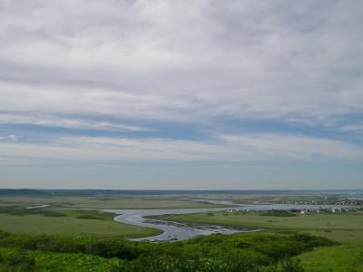 「琵琶瀬展望台」は、厚岸市街から太平洋シーサイドライン(道道123号線)を車で走って1時間あまり、浜中町琵琶瀬にある展望台です。広大な霧多布湿原と湿原を蛇行する琵琶瀬川を一望し、南には太平洋を臨む絶景スポットです。広い駐車場や食事処、土産物店などもありますが、それほど観光客は多くありません。夏は霧が発生しやすいところですが、訪れたときは天気がよく、素晴らしい景色を見ることが出来ました。天気がよければ、是非、訪ねられることをオススメします。
