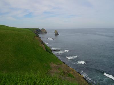 霧多布岬は正式には湯沸岬(とうふつみさき)といいます。また、トッカリ(アザラシ)を見かけることからトッカリ岬とも呼ばれています。標高40~60メートルのテーブル型の霧多布半島の東側に位置し、太平洋の荒波に突き出ており、周辺には展望台やキャンプ場もあります。駐車場から遊歩道を歩いて行く途中、遠くにエゾシカを見ました。展望台からは、アザラシのいる帆掛岩や断崖絶壁、浜中湾の海岸線など素晴らしい景色を望むことができます。天気がよければ、是非、訪ねてほしいスポットです。