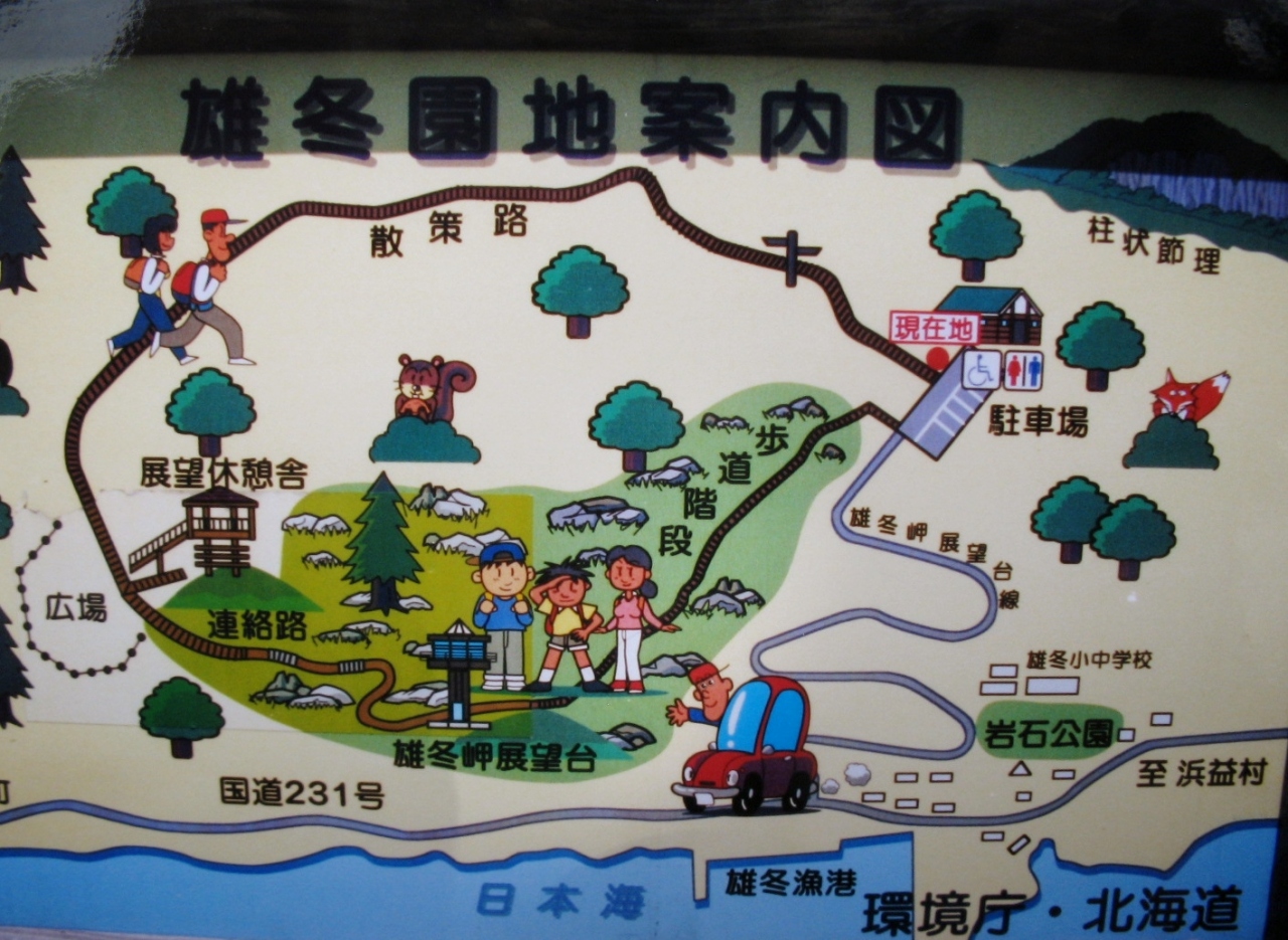 「雄冬岬展望台」は、札幌市内から国道231号線をおよそ90km、車で2時間あまりのところにあります。雄冬岬トンネルを留萌側に出てしばらく走るり、雄冬の少し北から山側にある脇道に入り、駐車場から急な階段を登って行くと雄冬岬展望台があります。標高135mの展望台からは眼下に日本海と断崖絶壁を眺める絶景ポイントになっています。展望台のふもとには、この地区に特徴的に見られる岩石を生かした雄冬岬岩石公園も整備されています。観光客が押し寄せるようなところではありません。ゆっくり景観を楽しむことが出来るスポットです。