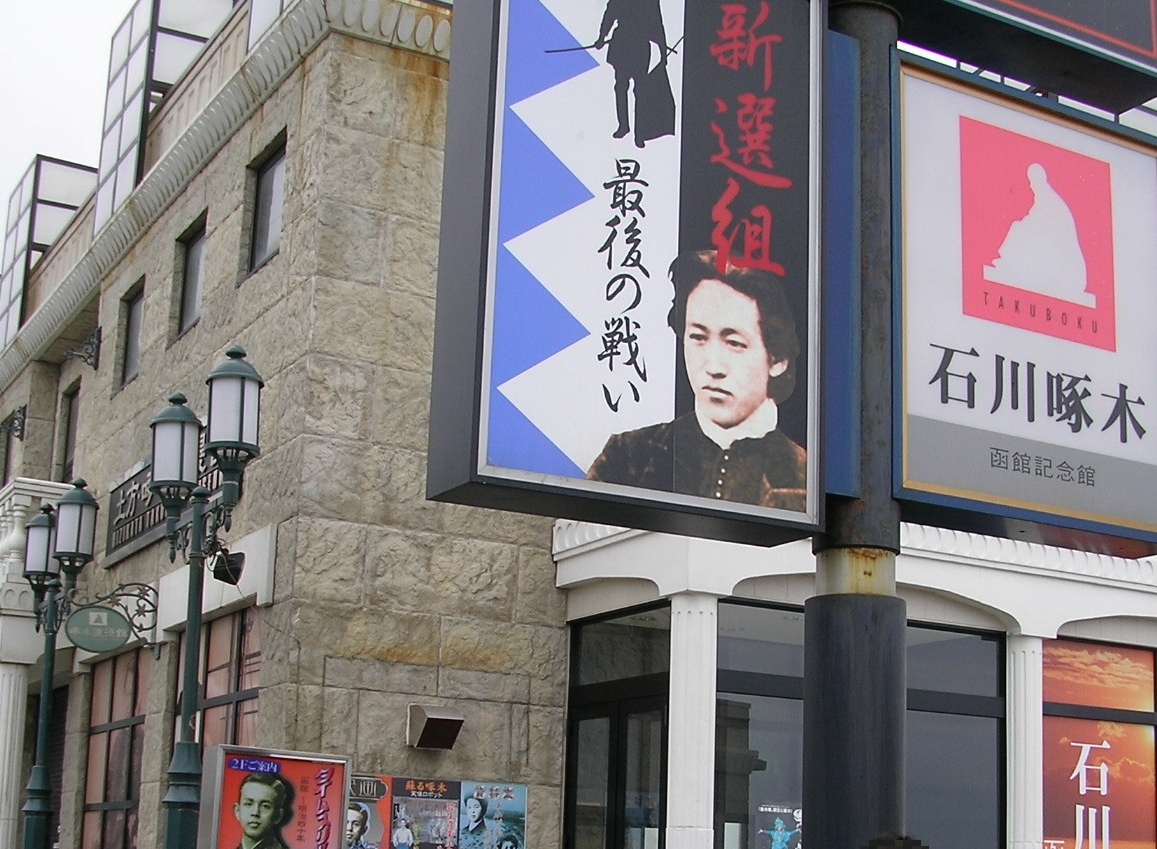 「土方・啄木浪漫舘」は、JR函館駅から2kmあまり、国道278号線に面した海沿いにあります。函館に縁のある新撰組副長土方歳三と、一握の砂で有名な石川啄木に関する資料館です。1階では土方が使った刀剣、鉄砲、屏風などの展示がありました。2階は啄木に関する展示室で、“一握の砂”の初版本などの資料展示のほか、函館で代用教員として務めていた石川啄木の授業風景をロボットを使って再現していました。入館料は600円です。館内は撮影禁止です。ファンの方にお奨めします。