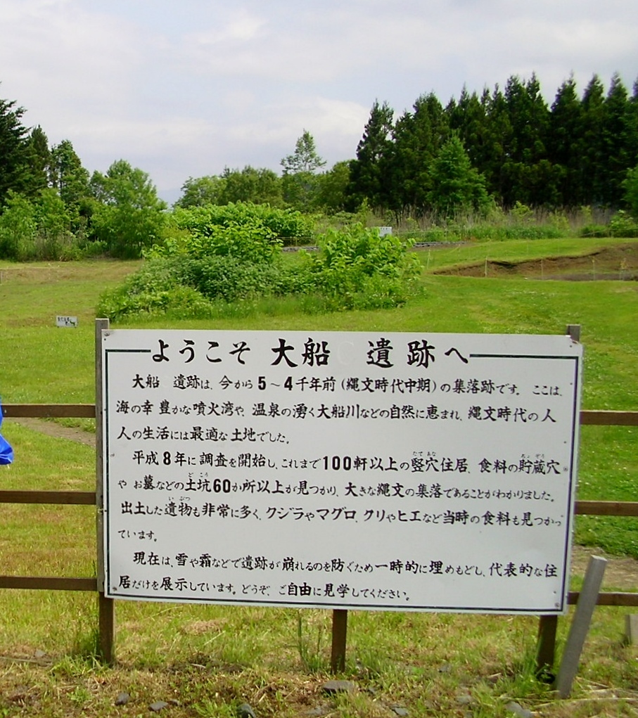 「大船遺跡埋蔵文化財展示館」は、南茅部町にある大船遺跡を中心にこれまで町内で出土した縄文時代の遺物や国指定重要文化財の「中空土偶」(複製)を展示しています。入館料は無料です。大船遺跡は、大船川左岸の台地にある縄文時代中期の遺跡です。目の前には噴火湾が広がり、背後には栗の木山があり、サケ・マスが遡上する大船川も流れているなど、自然環境に恵まれたところです。展示館の傍には竪穴住居跡、舟形住居跡、お墓の土杭など大規模な集落跡があります。大船遺跡は国の史跡に指定されています。