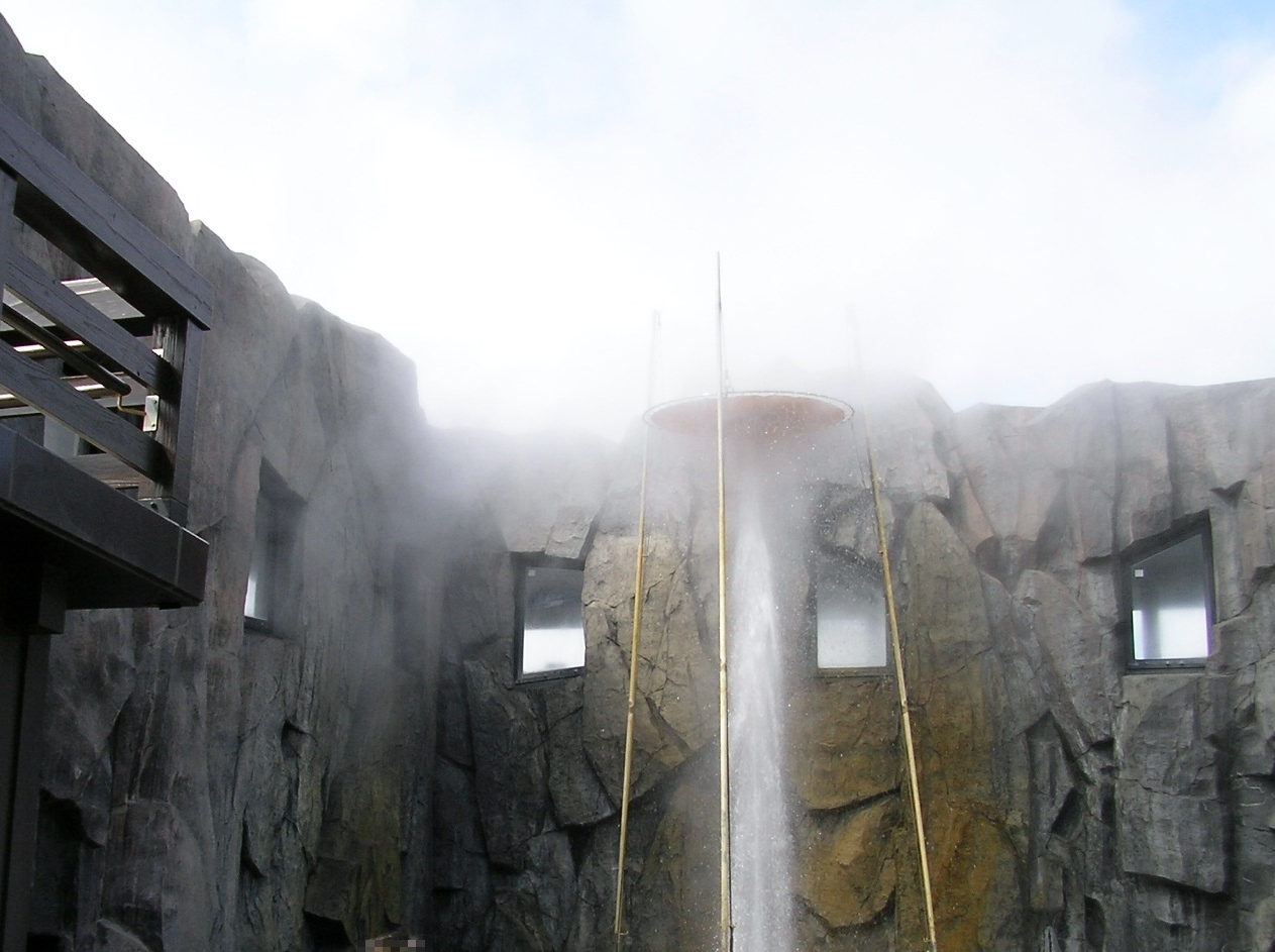 駒ヶ岳の東側に位置する鹿部町に「しかべ間歇泉公園」があります。この間歇泉は10分おきに噴出し、噴き出す温泉は100℃の熱湯で高さは最大で15mにも達し、結構迫力がありますが、数十秒であっというまに終わります。公園内には足湯コーナーや資料館などもあって、待ち時間10分は気になりませんでした。入場料は300円です。