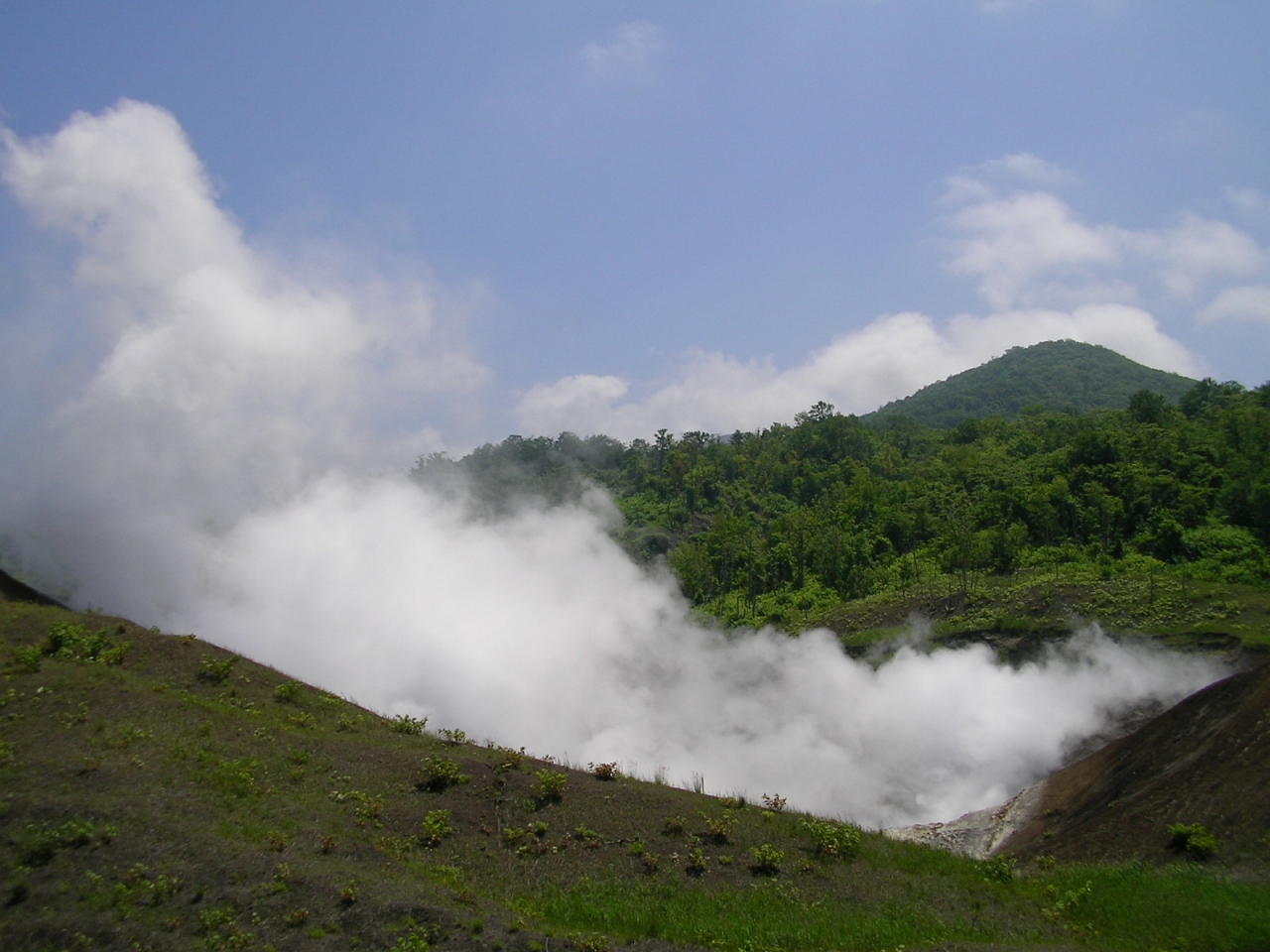 昭和18年に噴出。噴火の初めから終りまで記録が残る、まだ活動中の最も新しい火山の1つで、現在も噴気活動が見られます。登ることは禁止されていますが、麓からみても噴気をあげる姿は迫力がありました。標高402mで国の特別天然記念物に指定されています。昭和新山の山麓には昭和新山の誕生から活動が止まるまでを独学の観測方法でつぶさに観察、詳細な記録を残した三松正夫記念館(入館料大人300円)があり、観察・記録資料、観測機器、写真などが展示されています。