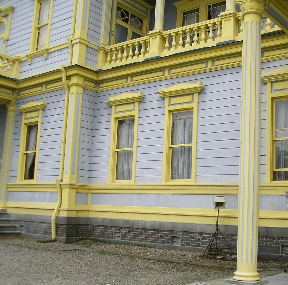 函館を代表する坂の一つ、基坂(もといざか)を登りきった上に旧函館区公会堂はあります。1910(明治43)年に竣工した、外壁がブルーグレーとイエローのコロニアルスタイルの威風堂々とした西洋館です。和と洋の要素が融合した建築意匠に優れ、館内に置かれた家具の保存状態も良いことから、1974年(昭和49年)に木造2階建ての本館が、1980年(昭和55年)には管理人室にあたる附属棟がそれぞれ国の重要文化財に指定されています。建物の中では貸衣装のドレスなどがあり、それを着て写真をとることが出来ます。バルコニーからの眺めも良かったです。