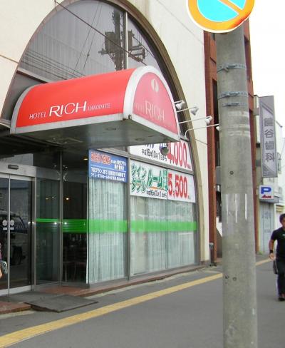 「ホテルリッチ函館」さんは、JR函館駅から東に1kmほど、市電の松風町駅の近くにあります。小さなホテルで施設は古そうでしたが、部屋は綺麗に管理されていました。ツインの部屋で広くは無かったが、市内で一泊5500円という価格を考えれば十分納得できる範囲でした。朝は、モーニングコーヒーと小さなパンが無料でいただけました。駐車場はホテルのすぐ傍にあり、500円でした。コンビニや飲食店も近くにあるし、スタッフの対応も良かったので、函館に来たらまたお世話になりたいと思いました。