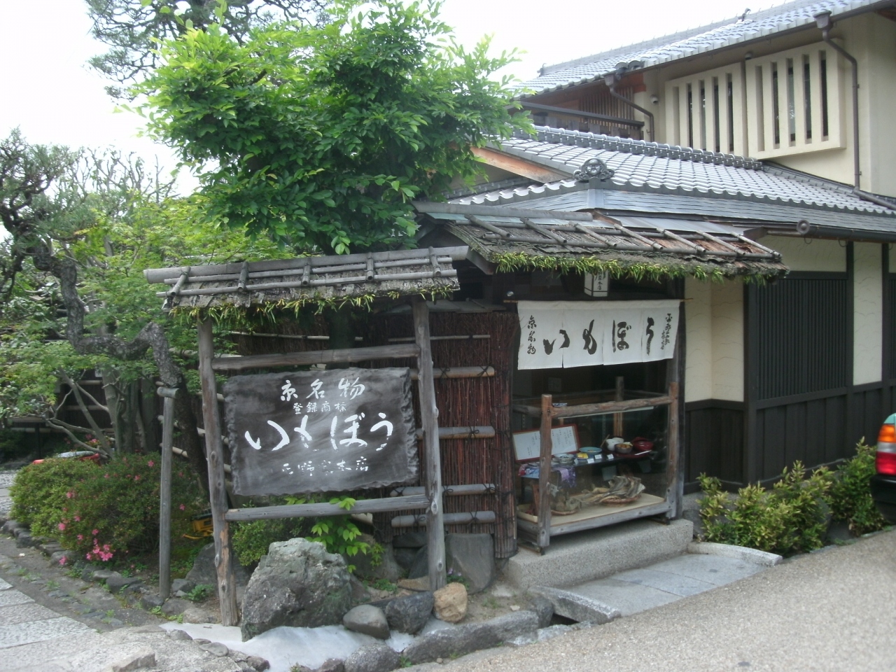 「いもぼう平野家本店」さんは、円山公園内にあります。京野菜の海老芋(サトイモの一種)と棒鱈を煮込んだ、“いもぼう”と言う300年の歴史のある料理を出す、旅の雑誌やテレビの旅番組で紹介されることが多いお店です。お店は奥が深く、その長い土間沿いに御座敷があって京都の料亭らしい、いいい風情がありました。メインの“いもぼう”が食べられるセットメニューは、「いもぼう御膳」と「月御膳」、「雪御膳」、「花御膳」、「円山御膳」の五種類がありました。その中から一番安い「いもぼう御膳 2520円」を頂きました。“いもぼう”に、和え物の小鉢、お吸い物、豆腐、香の物、ご飯がセットになっていました。肝心の“いもぼう”は、棒鱈(干し鱈)を水で戻したものを、出汁と砂糖などの調味料で炊いてあると思うのですが、しっかり柔らかくなっていて脂も乗ったものでした。海老芋の方は、ねちゃつと柔らかく、鱈から出た旨みと出汁の味がしっかり利いていました。それにしても、鱈が一口分の大きさしか無かったことが残念でした。コストパフォーマンスは決して良いとは言えませんが、お店の雰囲気も含めてひとつの“文化”ととらえれば納得できるものでした。我が家では、毎年、正月のオセチ用に棒鱈の大きなものを一匹買って、一週間かけて水で戻して、出汁やザラメなどの調味料でしっかり煮込んで硬く仕上げます。ここのお店のものとは、随分違うので勉強になりましたが、我が家の伝統を変えないでいこうと思いました。