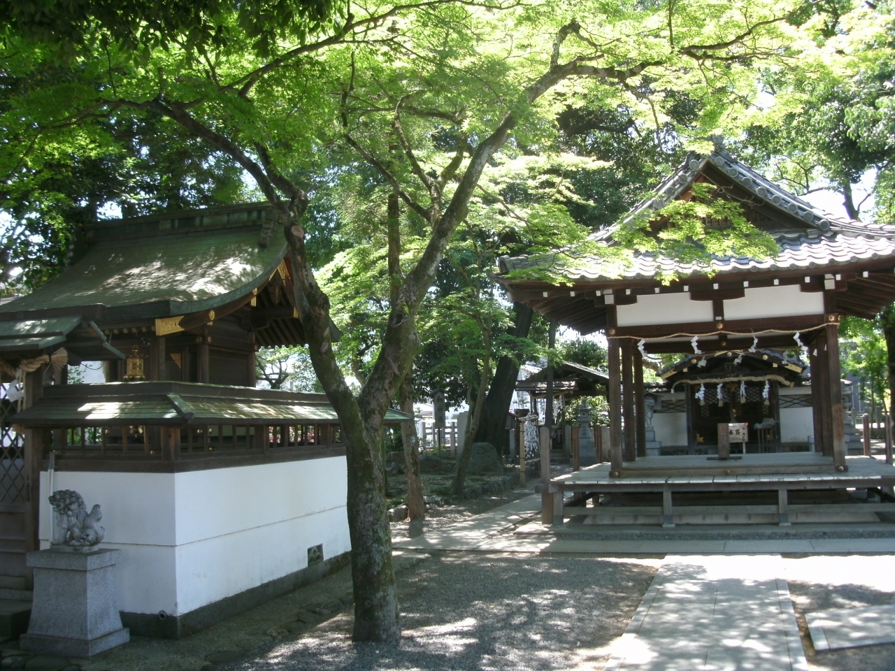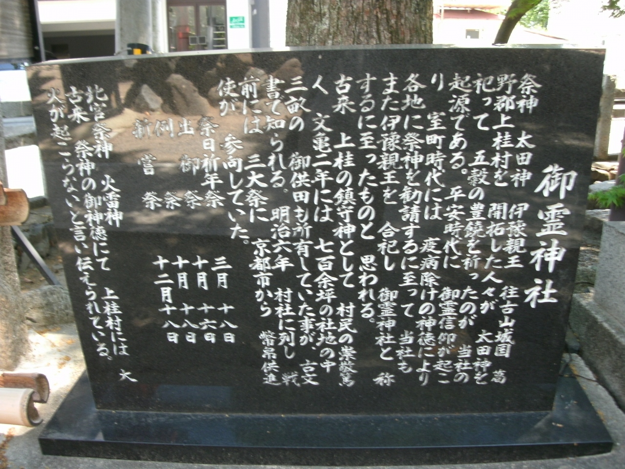 「上桂御霊神社」さんは、阪急嵐山線の上桂駅の東、約200m、府道123号線に面して鎮座されています。祭神は太田神、伊予親王で、往古山城国葛野軍上桂村を開拓した人々が、太田神を祀って五穀の豊饒を祈ったのが起源と、現地にあった案内板にありました。住宅街に囲まれた神社ですが、静かで、境内には樹齢130年と言われる大きなクスノキがあり、神社の森は鎮守の森として地域の人々に親しまれているそうです。