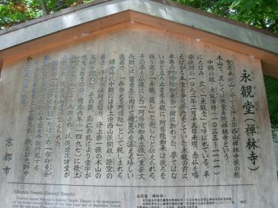 禅林寺は、左京区永観堂町にある浄土宗西山禅林寺派総本山の寺院で、一般には通称の永観堂の名で知られています。山号を聖衆来迎山、院号を無量寿院と称し、本尊は阿弥陀如来、開基(創立者)は、空海の高弟の真紹僧都です。紅葉の名所として知られ、古くより「秋はもみじの永観堂」といわれ、紅葉シーズには大変多くの人で賑わいます。新緑の季節も素敵で、ゆっくり見て回れるのでお奨めです。