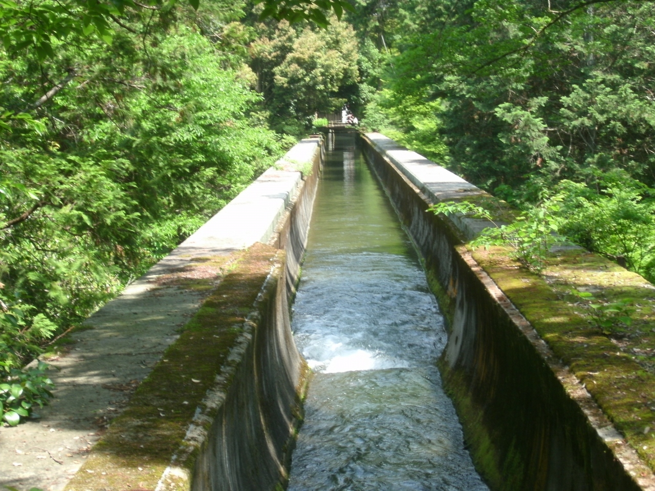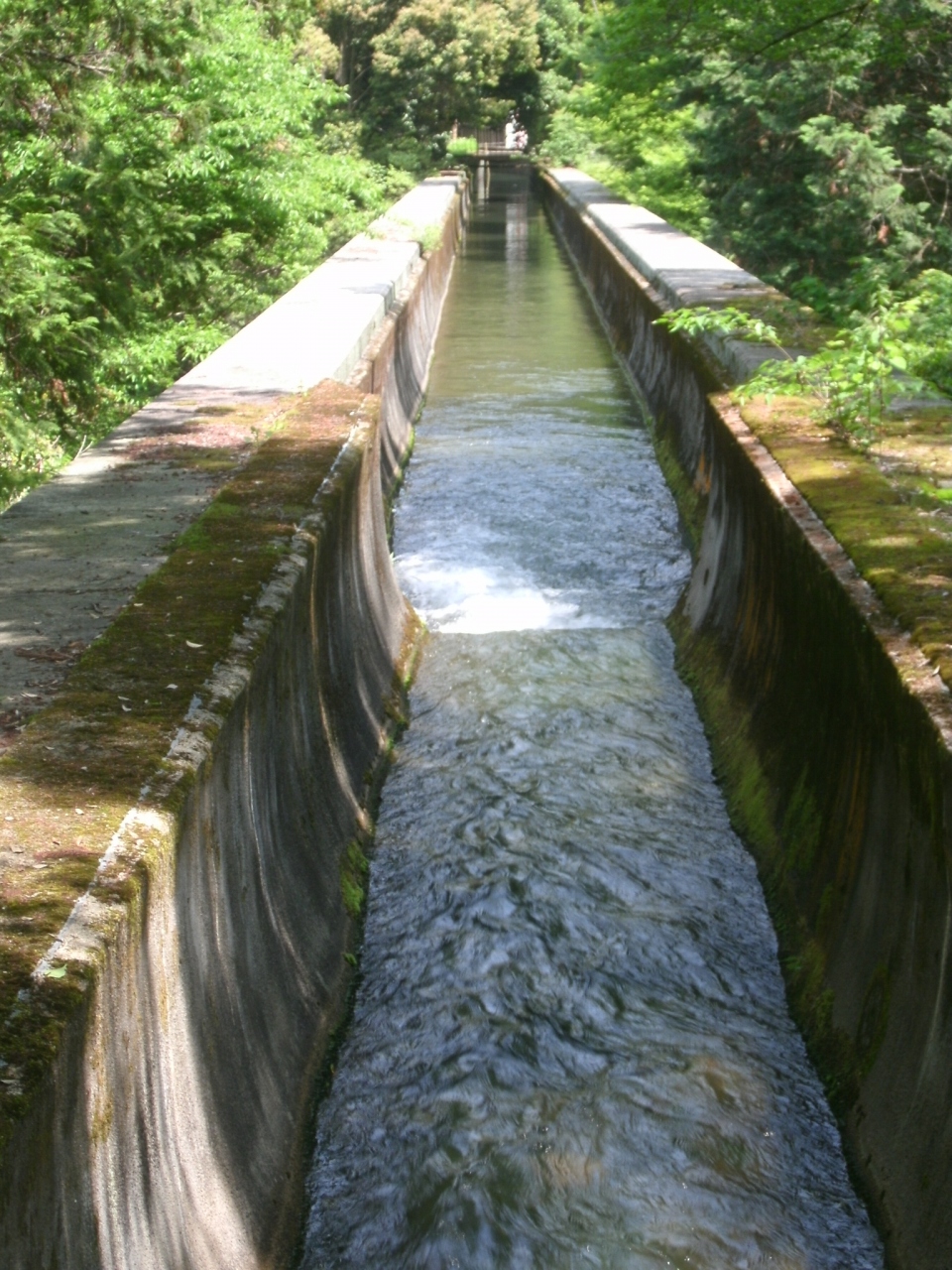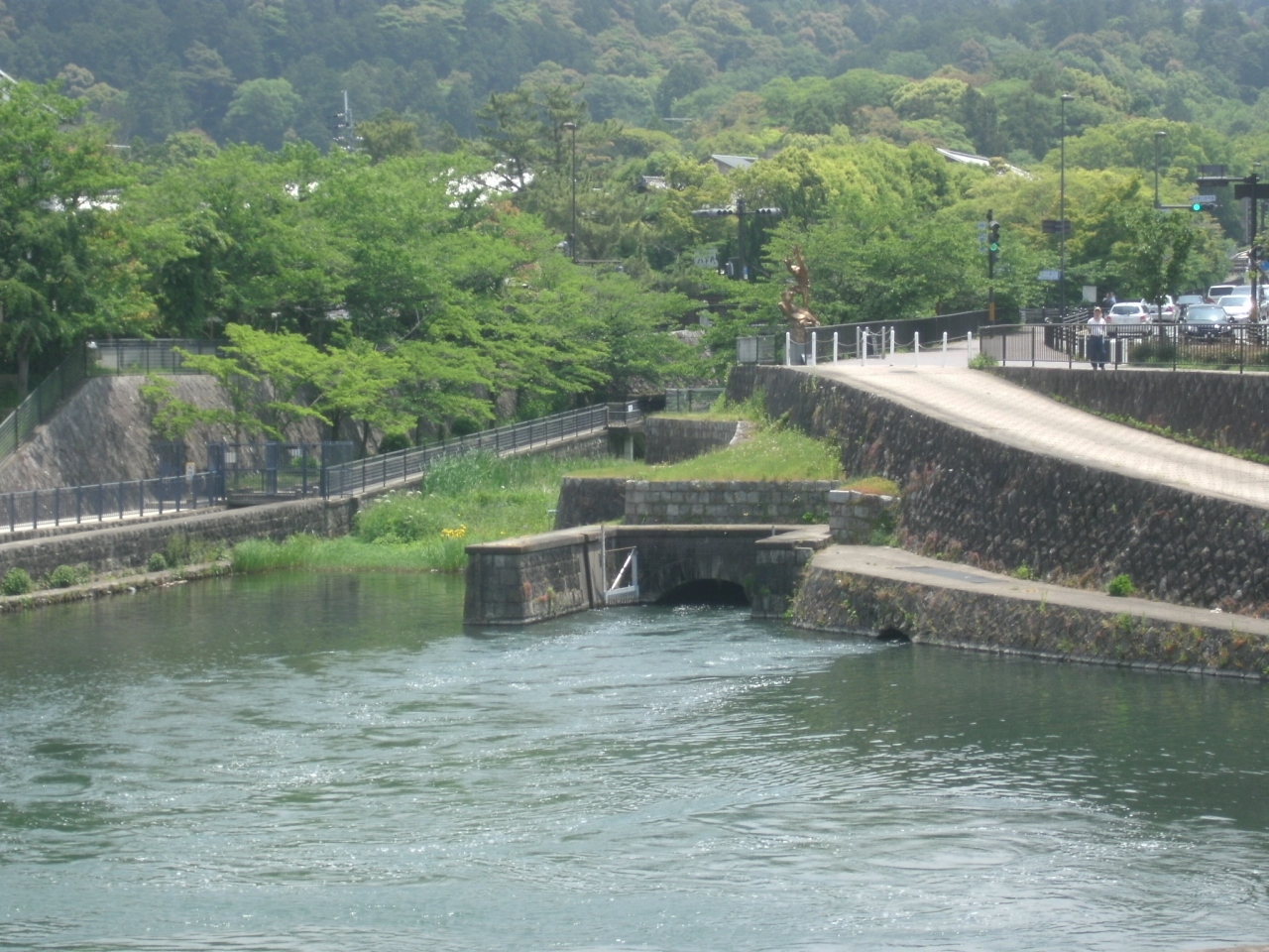 琵琶湖の水を京都市へ通し、通船、水力発電、飲料水の供給など多様な目的で明治時代に造られた水路で、大津市三保ヶ崎の琵琶湖畔から長等山の下を抜けて京都山科の山をめぐり、蹴上から鴨川左岸にいたり、南下して深草・伏見を経て宇治川に注ぎます。今から100年以上も前に、よくぞ、こんな大工事が出来たものだとその技術力の高さに感心します。2007年に国の近代化産業遺産の一つに登録されています。蹴上げには、無料で見学できる琵琶湖疏水記念館があります。蹴上げインクラインや南禅寺にある水路閣などの関連施設もあわせてご覧になることをお奨めします。