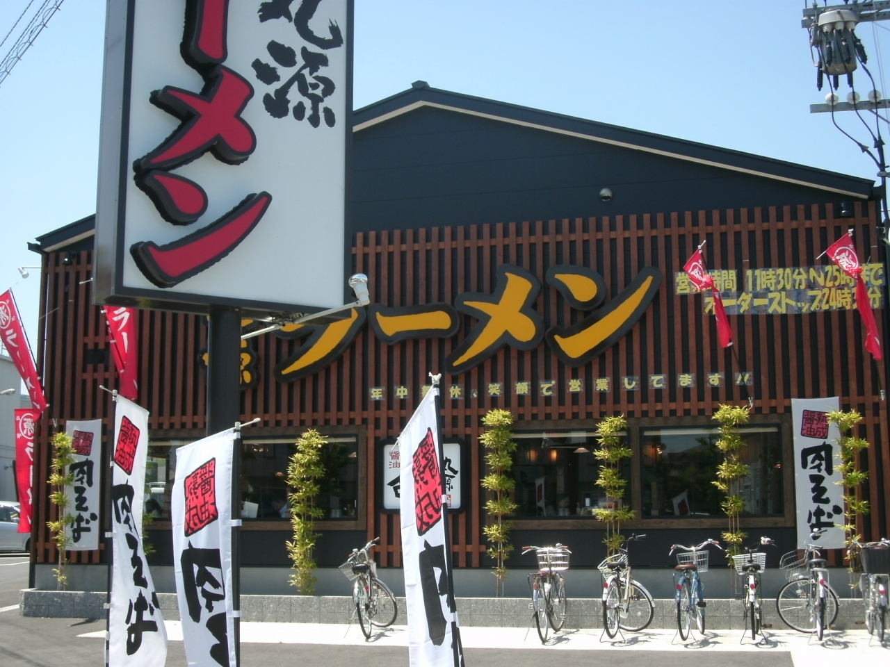 「丸源ラーメン (桂店)」さんは、国道9号線の千代原口から東に600メートルあまり走って阪急嵐山線の高架をくぐって、しばらく行くと左側にあります。大きな駐車場が完備されており、入りやすいお店です。“肉そば”が売りの店なので、“肉そば(682円)”を頂きました。スープは豚骨・鶏、醤油ベース、麺は少し細めのストレート、具材は、チャーシューではなく豚バラ肉をスライスして煮込んだようなものがタップリ入っており、その他に玉葱のスライス、海苔、青ネギ、紅葉おろしなど。食べ始めはスープが少し甘味がきつかったが、紅葉おろしを徐々に溶かし食べると、味の変化が生まれ、あっさりとした味になった。薄い肉と、もっちりした麺とスープの相性もよかった。