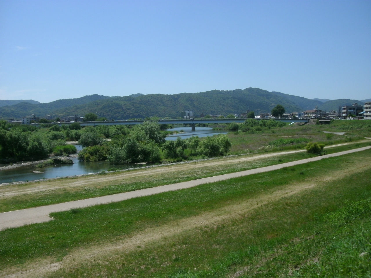 「桂川サイクリングロード」は、正式名称を“京都八幡木津自転車道”と言い、自転車愛好家をはじめ、広く京都府民の健康づくりと自転車交通の安全性を確保するため整備されたものです。一部、地元車を除き、自転車・歩行者専用道路になっています。起点は京都嵐山の渡月橋右岸で、終点は木津川市の泉大橋左岸。道路延長は約45キロメートル、幅員3メートルで、 ロードの多くは桂川や木津川の岸辺を通り、急な上りや下り坂や信号も無く、舗装もされていてすごく快適な道です。自転車好きの方にお奨めのコースです。