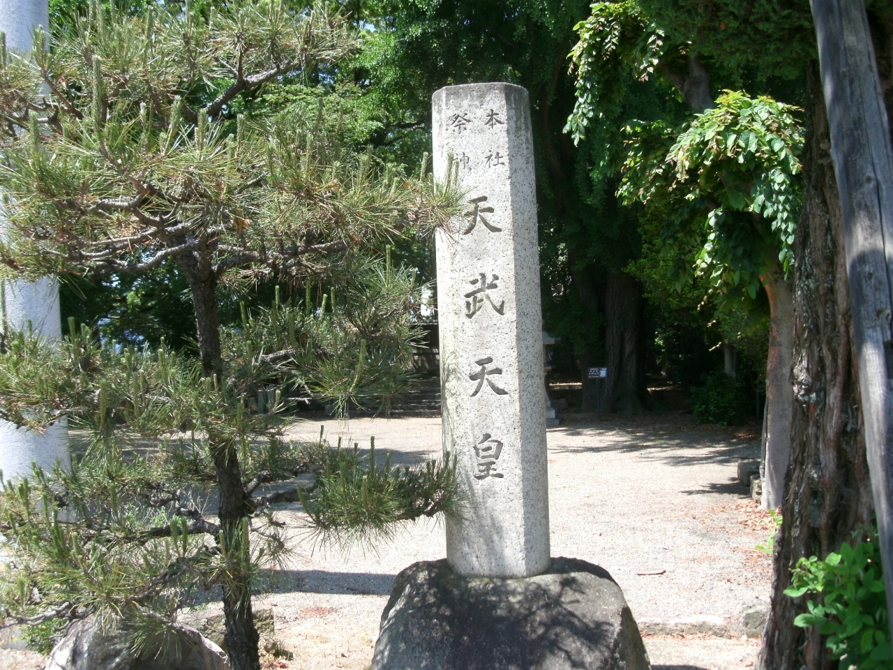 「三栖神社」は、国道1号線(油小路通)と府道188号線(外環状線)の交差点を100mほど西に行って、北に少し上がったところに鎮座されています。創建などの由緒は不明で、横大路下三栖の産土神である天武天皇を祀っておられ、通称、天武天皇社ともいわれています。境内には“区民誇りの木”にも選ばれた大きなイチョウの木があります。毎年10月に行われる祭礼に炬火祭りがあります。直径約1m20cm、長さ5m、重さ1t以上もある大炬火1対を作り、担ぎ回る慣わしがあります。これは、天武天皇が大津行幸にあたり当地を通過された時に村人が、松明を灯して暗夜を照らしたという伝説によるもので、京都市登録無形民俗文化財になっています。本殿は二重の基壇上に三間流造の社殿を構え周囲に堀が廻らされています。