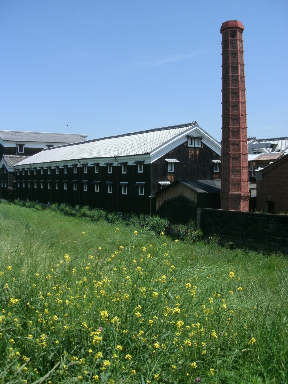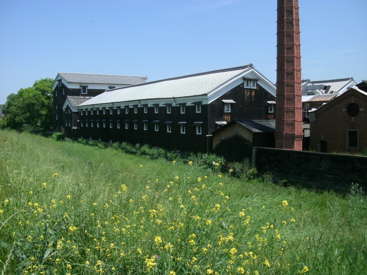 「松本酒造」さんは、京阪本線の伏見桃山駅から西に大手筋商店街を通り抜け、500mほど進むと、右側にあります。清酒“日出盛”などで知られる「松本酒造」さんは、1791年(寛政3年)、松本治兵衛により現在の京都市東山区において酒造りをはじめたことが創業とされています。1922年(大正11年)、7代当主松本治平の時に、現在地に本社を移転して酒造場を増設されました。この地は新高瀬川の堤防横にあり、この酒蔵群はテレビや映画に、しばしば登場しており、特に春になると菜の花と酒蔵の写真を撮るために多くのカメラマンが訪れる有名な撮影スポットになっています。1922年(大正11年)築の本社酒造場は“伏見の日本酒醸造関連遺産”として平成19年に経済産業省の近代化産業遺産に認定されています。