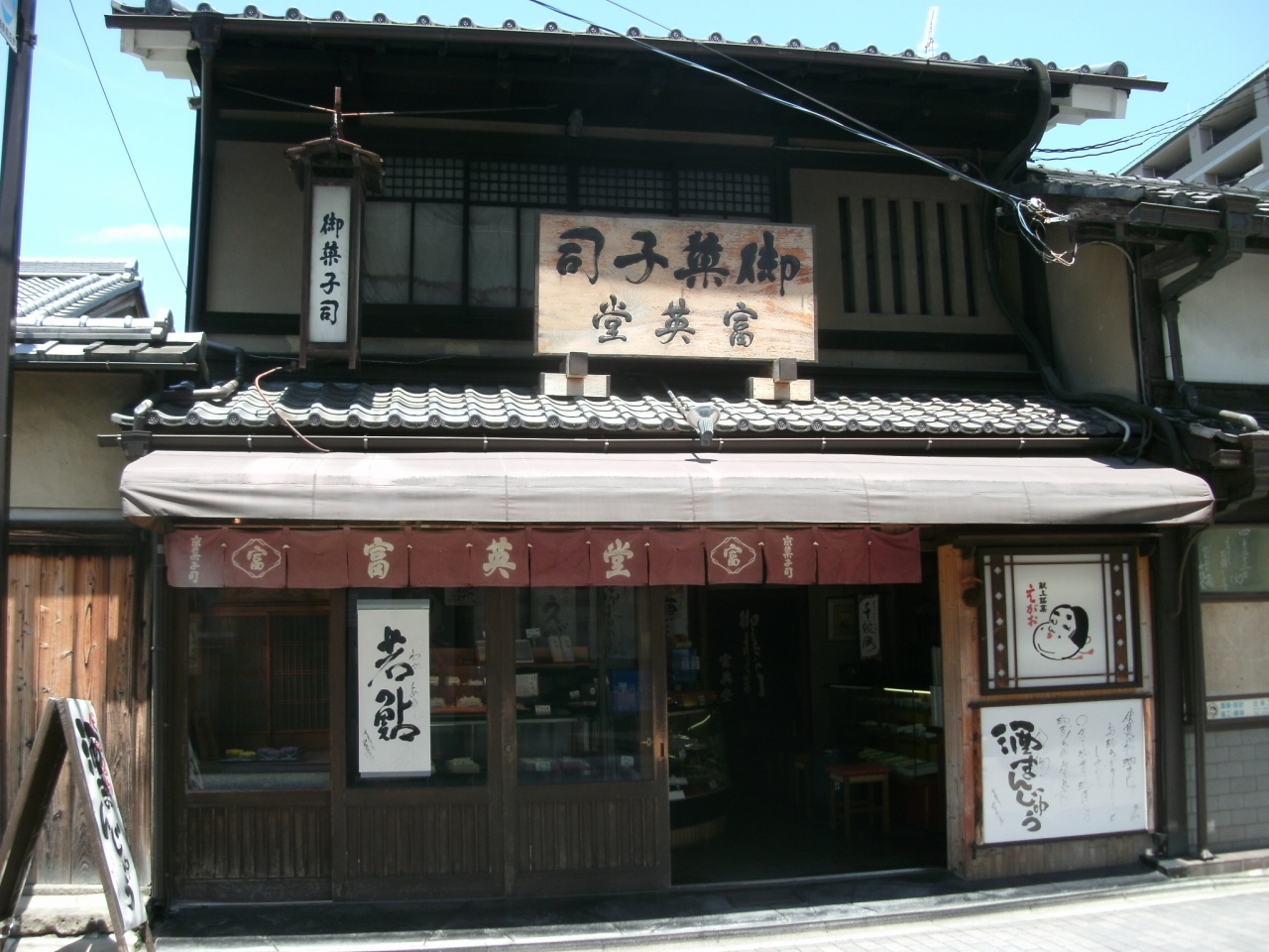 「京菓子司 富英堂」さんは、伏見の黄桜カッパカントリーの北側の“魚屋通り”にあります。お店はそれほど大きくはありませんが、周囲の町並みにとけこんで、老舗を感じる町屋風の店構え。富英堂さんといえば、“酒まんじゅう”や“えがお”、“龍馬鍔”、“御香の水”などが定番です。中でも、名水・御香水を使い、伏見の酒粕を生地に練り込んで作られている“酒まんじゅう”は人気商品で、売り切れることもしばしば。この日は、5個入りパック682円を購入しました。柔らかな皮にほんのり香る酒の香り、甘さ控えめの、なめらかな漉し餡のバランスが絶妙で、これぞ、酒まんじゅうという感じ。冷めても美味しいし、時々食べたくなる一品です。