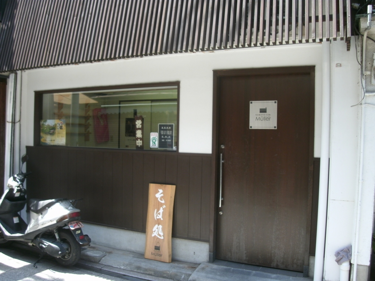 伏見の龍馬通り商店街にあります。入り口付近に“そば処”の看板が立ててあるので、かろうじて蕎麦屋さんと判りますが、外観からはとても手打ち蕎麦屋さんとは思えません。店内も白と黒を基調にしたモダンな内装で清潔感があり、落ち着ついた雰囲気です。ざる蕎麦850円を頂きました。蕎麦はかすかな甘味とホンノリ広がる香りがよく、歯ざわりもなかなかで大変美味しかった。最後にそば湯をいただきました。近辺では、なかなか美味しい蕎麦屋さんがないので、貴重な存在のお店だと思います。
