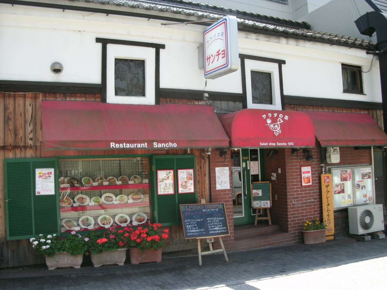 「サラダの店サンチョ」さんは、京阪電車の伏見桃山駅の南側約100m、魚屋通りにあります。河原町と西京極にもお店がある、洋食とサラダのお店です。店内はそれほど広くはありませんが明るく、オシャレで綺麗なお店で、女性のお客さんでいつも賑わっています。私の一押しは、サラダでは“エビサラダ700円”と“ビーフサラダ780円”、洋食では“照焼きステーキ1200円”と“牛肉の赤ぶどう酒煮1450円”と“カニクリームコロッケ880円”です。サラダの専門店だけあって、サラダは他店と比べて一味違います。11時30分から15時まで、お得なランチもやっています。