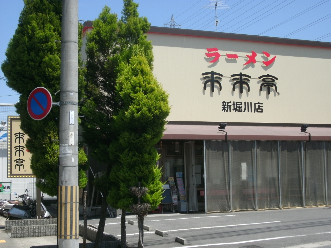 「来来亭 新堀川店」さんは、油小路通と伏見大手筋通をの交差点を南に200mほど下がったところにあります。国道171号線の上植野・菱川の信号をを西に200mほど入ったところにあります。店の前には駐車場があり車でも利用しやすいお店です。人気店で、時間帯によっては、結構お客が並んでいることが多い店です。お気に入りのラーメン屋の一つで、お客の好みによって、麺の堅さや背脂・ネギの量、チャーシューを脂身にするか等などを聞いてもらえるので、自分の好みのスタイルで味を楽しめるのがいいところです。私が好きなのは、麺堅め、背脂多め、ネギ多め、チャーシュー脂身で、濃厚なスープにしっかり麺が絡まって美味い。ラーメン650円でした。