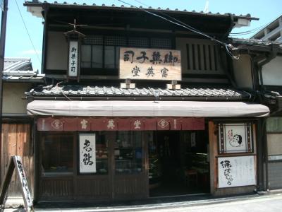 「総本家駿河屋 (伏見本舗)」さんは、京阪本線の伏見桃山駅の東、京町通りにあります。1461年(寛政2年)初代が、京都伏見の郊外に「鶴屋」の屋号で饅頭処を開いたことに始まる老舗です。歴史や伝統の重さを感じさせる店構えは堂々としたもの。昔ながらの手法でつくられた“古代伏見羊羹”が有名ですが、この日は、“抹茶フェア”をやられていたので、その中から“抹茶ブッセ 126円/個”と“茶団子210円/パック”を購入しました。上品な甘さの、仄かな抹茶の薫りは季節を感じさせるもので美味しく頂きました。