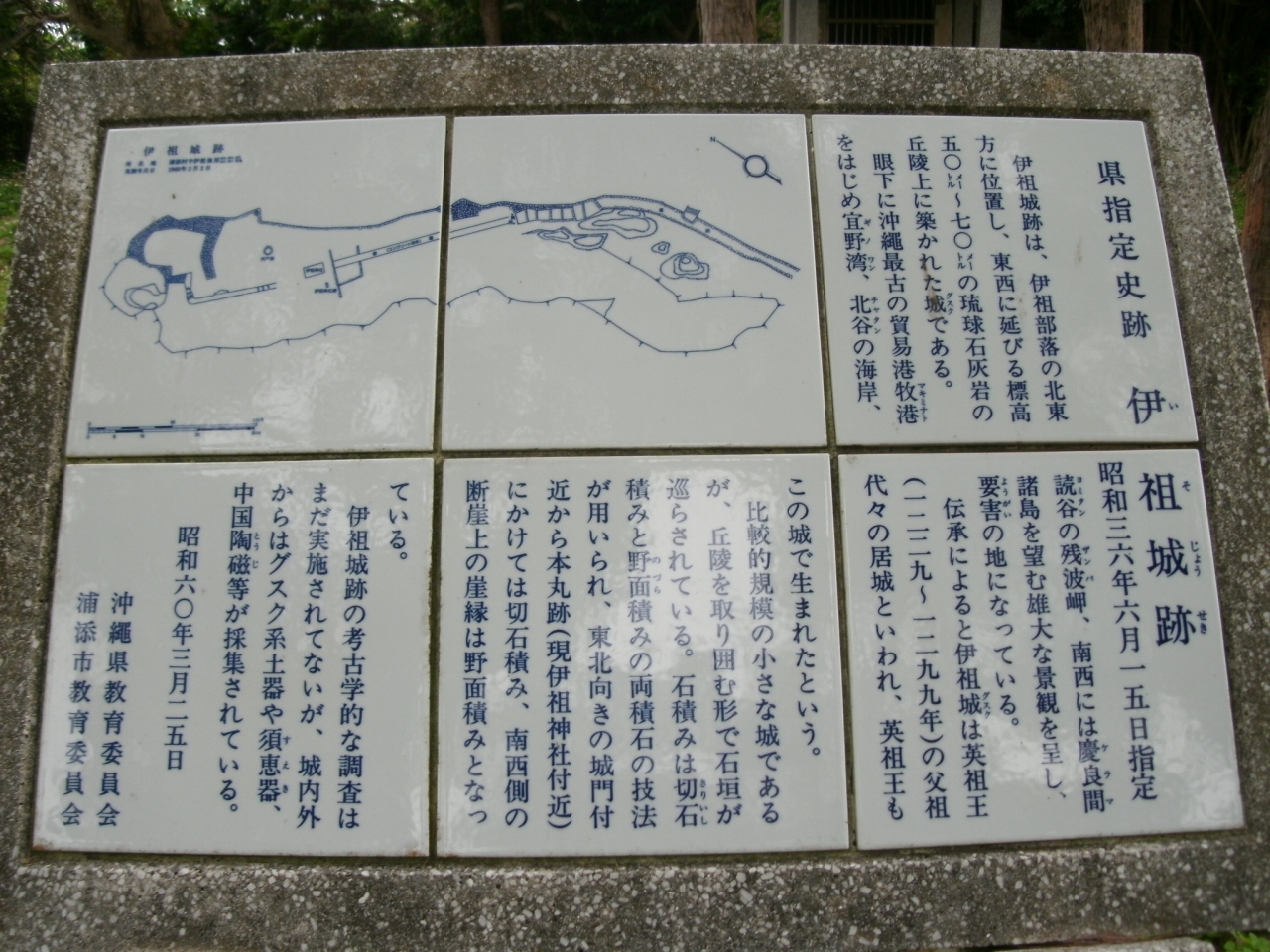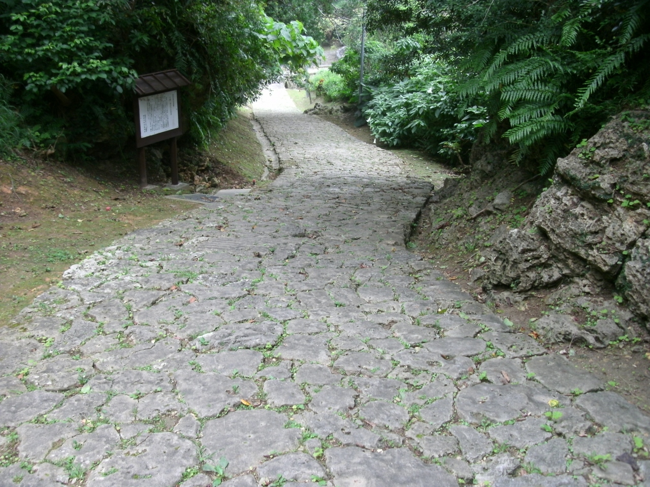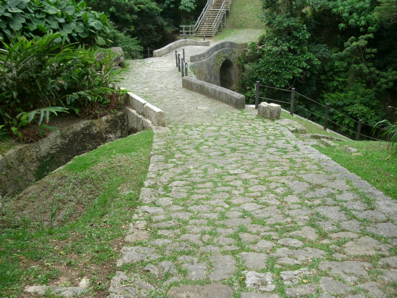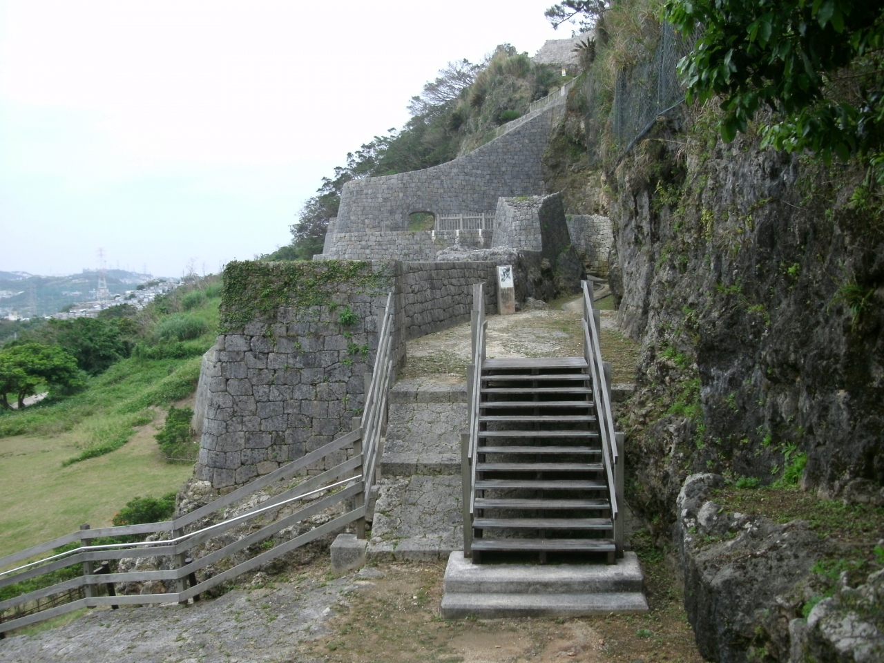 「浦添城跡」は、浦添大公園の中にあります。首里城以前の中山王城として知られ、14世紀頃には、高麗瓦ぶきの正殿を中心に掘や石積み城壁で囲まれた巨大グスクだったと考えられています。その後、中山滅亡、遷都、荒廃、薩摩の侵攻、そして沖縄戦の激戦地として城は壊滅し、現在は城壁が一部残っている程度です。1989年、国指定史跡となり、現在城跡の復元整備事業が進められていますので、それに期待したいと思います。なお、近くに“浦添グスク・ようどれ館”があり、そこに駐車すると便利です。