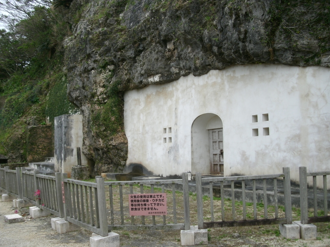 「伊祖の高御墓」は、浦添市、国道330号線の伊祖トンネルの上にあります。丘陵地の中腹にあって、地上から20m程の高所に位置することから高御墓と呼ばれているそうです。英祖王(えいそおう・1229~1299)の父である恵祖世主の墓と伝えられています。お墓は、崖の洞穴を利用したもので、前面を琉球石灰岩の石垣で塞いでいます。1972年に県指定有形文化財となっています。近くに、伊祖公園駐車場があるので利用すると便利です。