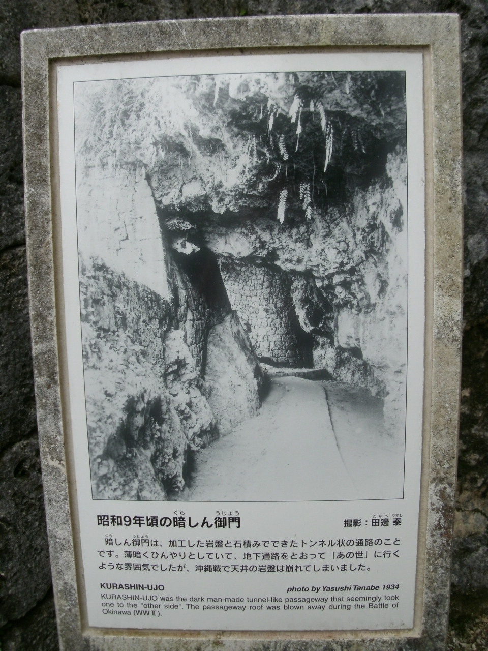 「浦添ようどれ」は、浦添グスクの北側崖下にある琉球王国初期の王陵で、咸淳年間(1265-1274年)に英祖王が築いたといわれています。その後、1620年に、浦添出身の尚寧(しょうねい)王が改修し、王自身もここに葬られました。岸壁に横穴を掘り墓室とし、中には中国産の石で作られた石厨子があります。向かって右側が英祖王、左側が尚寧王の墓といわれています。“ようどれ”とは琉球語の夕凪で、夕凪の様に静かなところと言う意味で名付けられたようです。なお、「浦添ようどれ」に行く手前に小さな資料館(入館料は100円)があり、古写真や発掘調査成果パネル、出土遺物などから浦添グスクと浦添ようどれの歴史がわかりやすく学べます。今回は、管理人の方から、「浦添ようどれ」の歴史などにつき詳しく説明頂き、大変勉強になった。