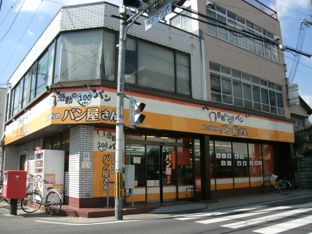 「かたぎはらのパン屋さん」は、府道67号線の“樫原山陰街道”の信号を南に100mあまり行ったところにあります。2013年2月18日にオープンした、パンが全品100円(税込み105円)と言うのが売りの、出来立てホヤホヤのパン屋さんです。菓子パン、調理パン、クロワッサン類など品数は豊富で、1個105円とは思えないような美味しさです。ハード系のパンのがあまりありませんので、今後の充実を期待したいところです。