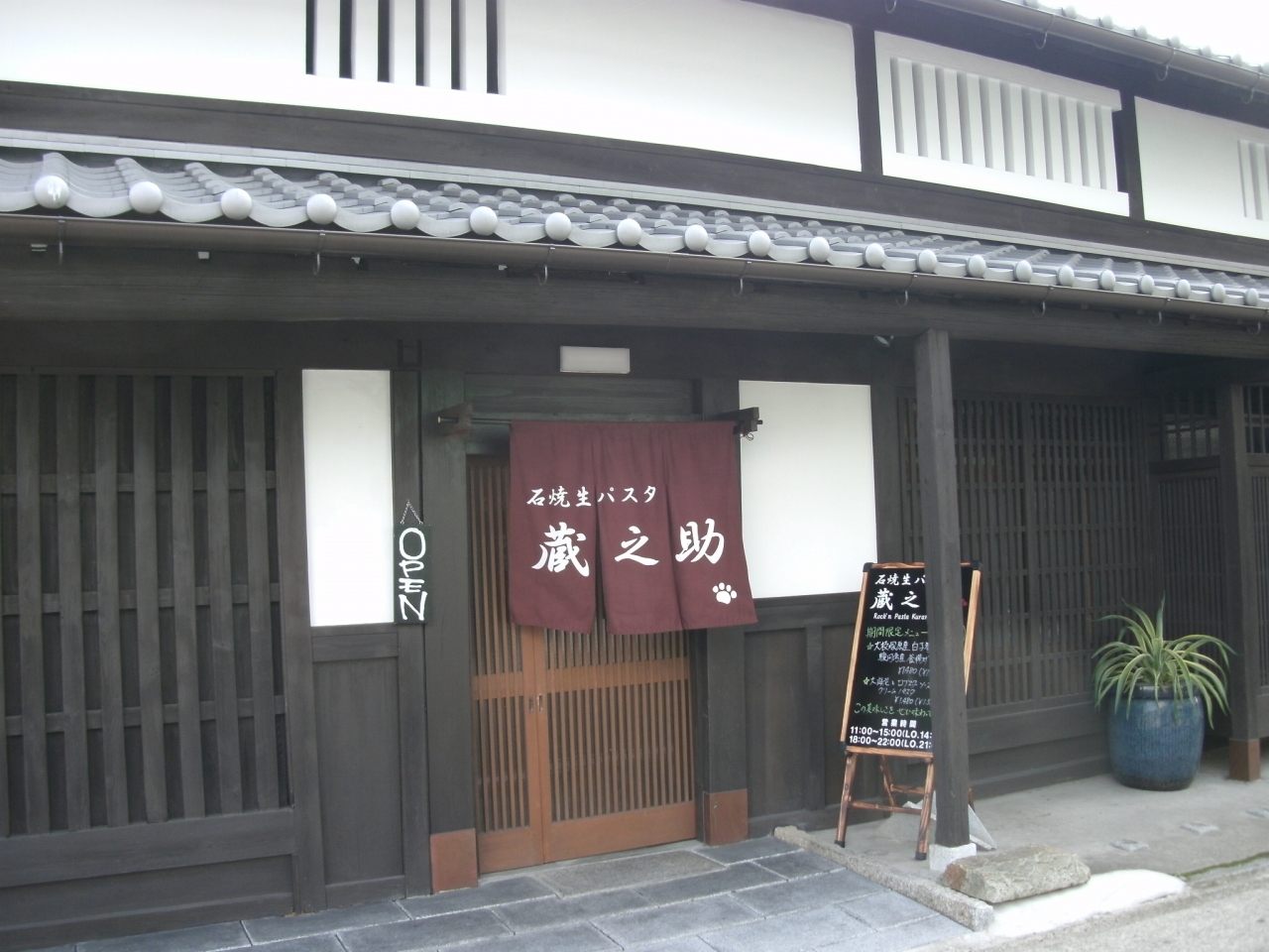 「石焼 生パスタ 蔵之助」さんは、府道67号線(物集女街道)の樫原の信号のそばにあります。2012年10月にできた新しいお店です。お店は古民家をリノベーションされているようで、シックで落ち着いた雰囲気です。内部は、天井は吹き抜けで、席間も広めで落ち着いて食事を楽しめる雰囲気になっています。定番のパスタはクリームソース系、トマトソース系、オイルソース系、和風系など20種類ぐらいあり、値段は1000円から1500円位までです。その他、前菜やサラダ、デザートなども充実しています。この日は、“スモークサーモンとポルチーニ茸の香り豊かなクリームパスタ1554円”を頂きました。熱々の石の器に入ったパスタは、ポルチーニ茸の味と香りがシッカリ出ており、濃厚なクリームソースとの相性がバッチリで大変美味しかった。