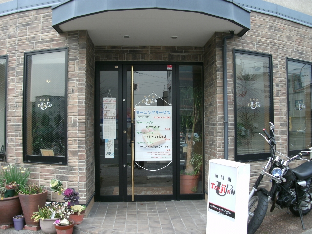 「珈琲館TENJIN」さんは、長岡京市の文化センター通り(府道10号線)の舞塚の信号の近くにあります。大きな勾配屋根のお洒落な喫茶店です。入口を入ると吹抜けのホールとカウンター席、その奥には、明るくて気持ちいい広々とした大きな窓に面したテーブル席が広がっています。ソファー席もあり、テーブルレイアウトもゆっくりしてて、いい雰囲気です。散歩に出て一服したくなったとき、日当たりの良い窓際の席で、ゆっくりとコーヒーを頂くのが至福のひと時です。