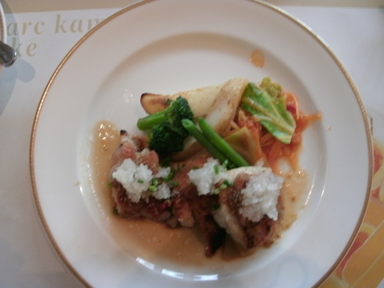 「ベーカリーレストラン サンマルク」さんは、国道1号線の大手筋交差点を東に入り、油小路通りを北へ300mほど行ったところにあります。広い駐車場があり、利用しやすいお店です。店内は天井が高く、ゆったりした席のお洒落なレストランです。ランチに“女子会コース、手作りデザートオーダーバイキング付き1648円”を頂きました。本日のスープは牛蒡ベース、前菜はきゅうりとパストラミのサラダ、主菜は若鶏のグリエでどれも美味しく頂きました。ここのレストランの特徴は、焼きたての十数種類のパンがサービスされることで、一口あまりの小さなパンが焼きあがるたびに、ウェイトレスの方が席を回りながらサービスしてくれます。焼きたてホカホカでとても柔らかくて美味しいです。