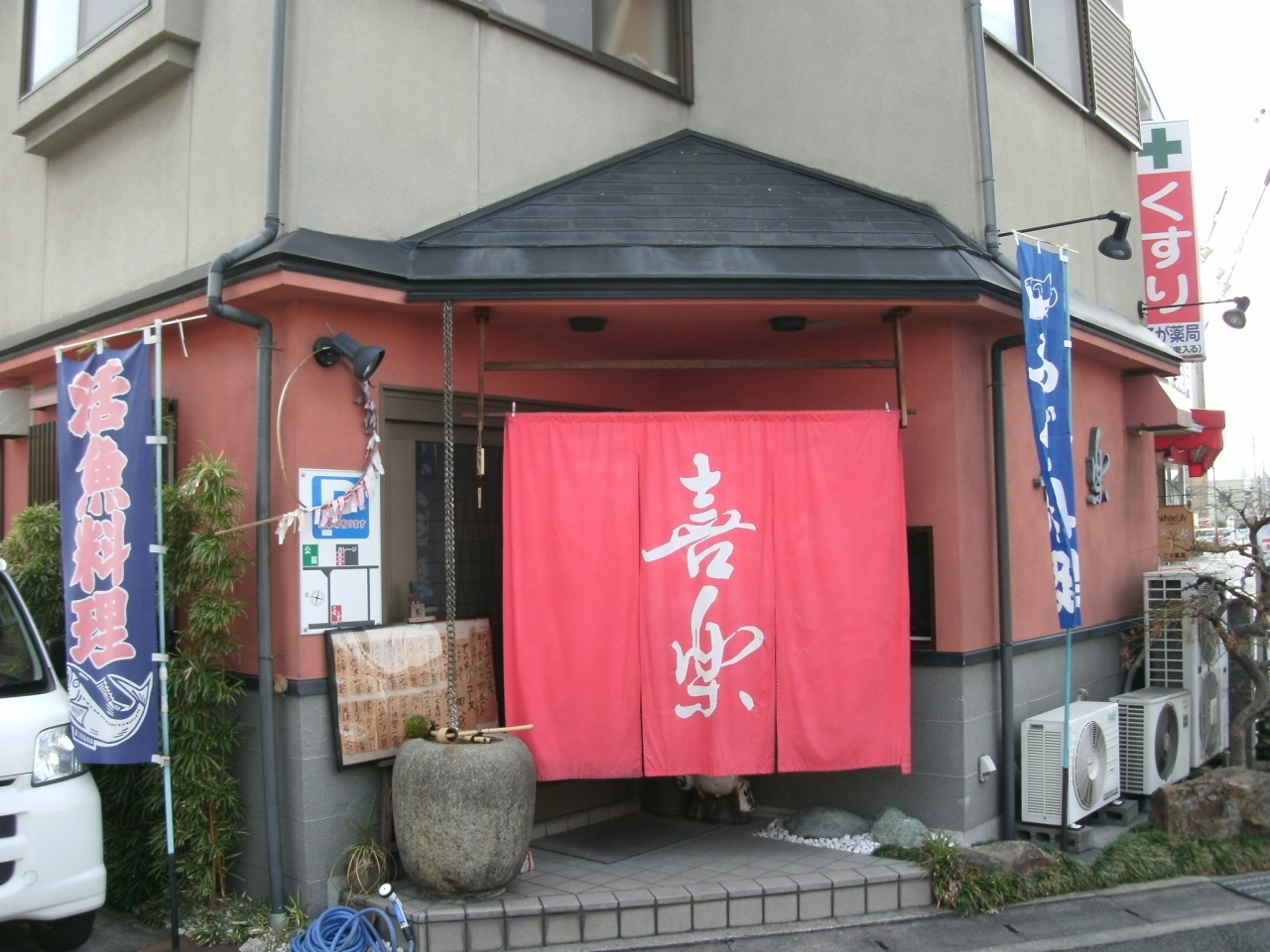 「喜楽」さんは、府道123号線、神川小学校前のバス停の北側にあります。魚介やお寿司などを中心にした日本料理を頂けるお店です。内部はカウンター7席、小上がり座敷が10席余りと、それほど大きくはありません。友人と食事する機会に訪問しました。イカの御造り、鯵のたたき、ぐじの塩焼き、メバルの煮付け、お寿司などを頂きましたが、流石に魚を売りにしているだけあって、どれも新鮮、仕事も丁寧で大変美味しく、お酒がすすみました。普通の居酒屋さんに比べれば、少々値が張りますが、いいお店だと思います。