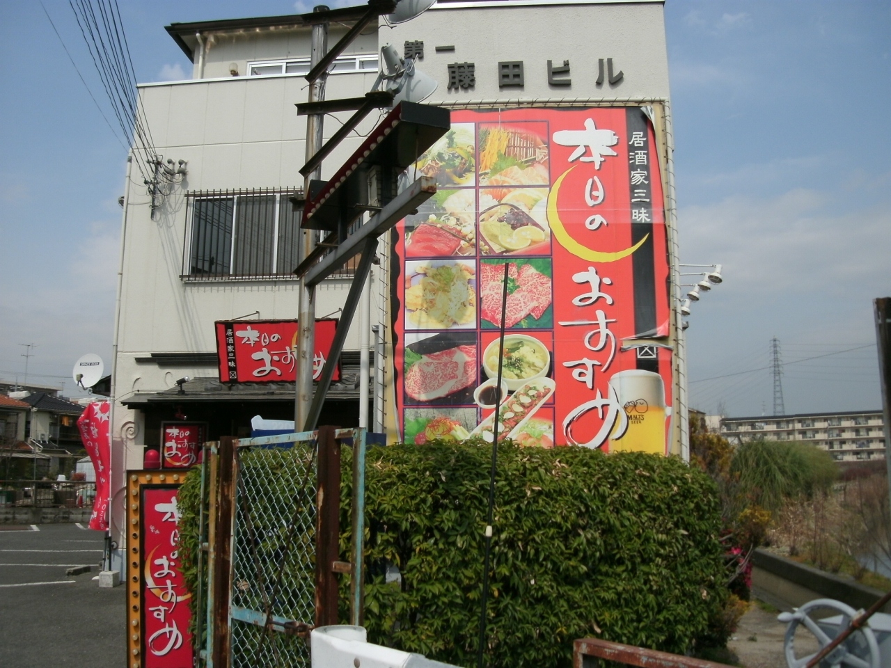 「居酒家三昧本日のおすすめ」さんは、府道123号線の“久我の杜”バス停のそばにあります。焼肉屋と居酒屋が一緒になったようなお店です。メニューも焼肉から、海鮮や串揚げなど居酒屋さんにある普通のメニューや鍋まで盛りだくさんです。お酒類も充実しているし、宴会プランやセットメニューなどもあるので、宴会をするのに良いお店だと思います。