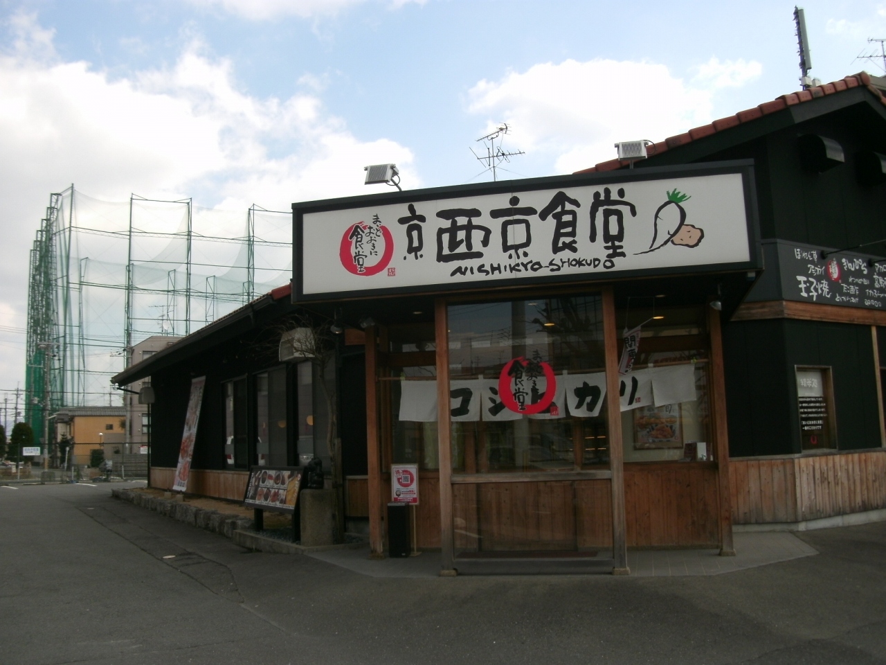 「京西京食堂」さんは、阪急桂駅の東、桂川街道沿いにあります。広い駐車場があり利用しやすいお店です。自分の好きなものを取って食べられる食堂で、鯖の煮付け、牛すき煮、鮭の塩焼き、天麩羅、揚げ物、豚汁、煮豆、、ポテトサラダ、酢の物、冷奴、玉子焼き、カレー等々、家庭で食べるお惣菜系のものが沢山あります。ご飯は釜で炊いているので美味しいです。一個一個のおかずは安いのですが、いろいろたのむと結構な額になります。急いでいるときや、簡単に済ませたいときはお奨めです。