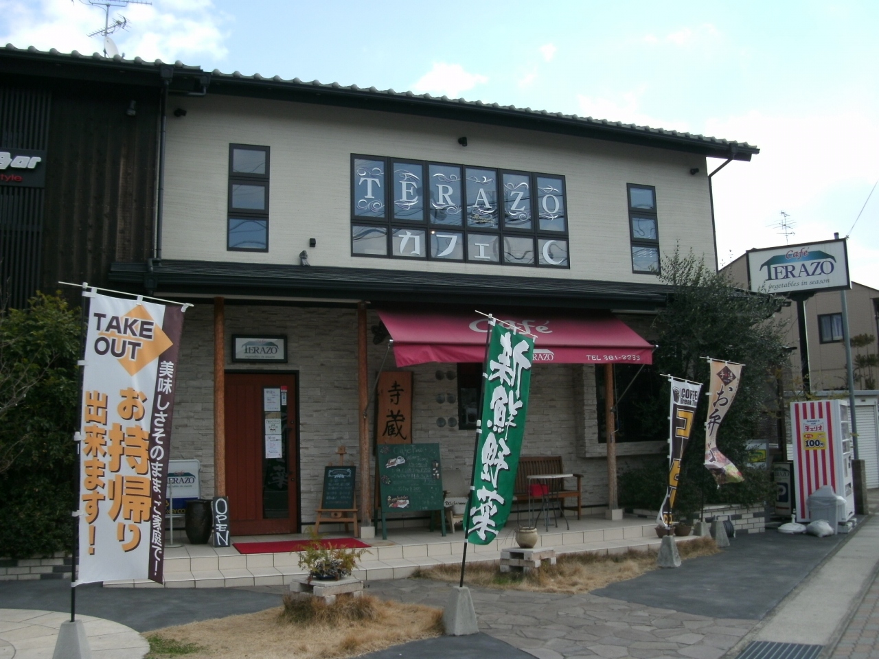「TERAZO Cafe」さんは、桂離宮の西、桂川街道沿いにあります。駐車場があり入りやすいお店です。店内はとっても明るくていい雰囲気です。この日は“本日の寺蔵ランチ980円”を頂きました。豚の生姜焼きに揚げ胡麻豆腐、茹で鶏サラダに牛蒡サラダのランチでした。店の前に“新鮮野菜”の幟があった理由が判る、野菜たっぷりの健康的で美味しいランチでした。お客さんに女性が多いのも、野菜が美味しいからでしょう。