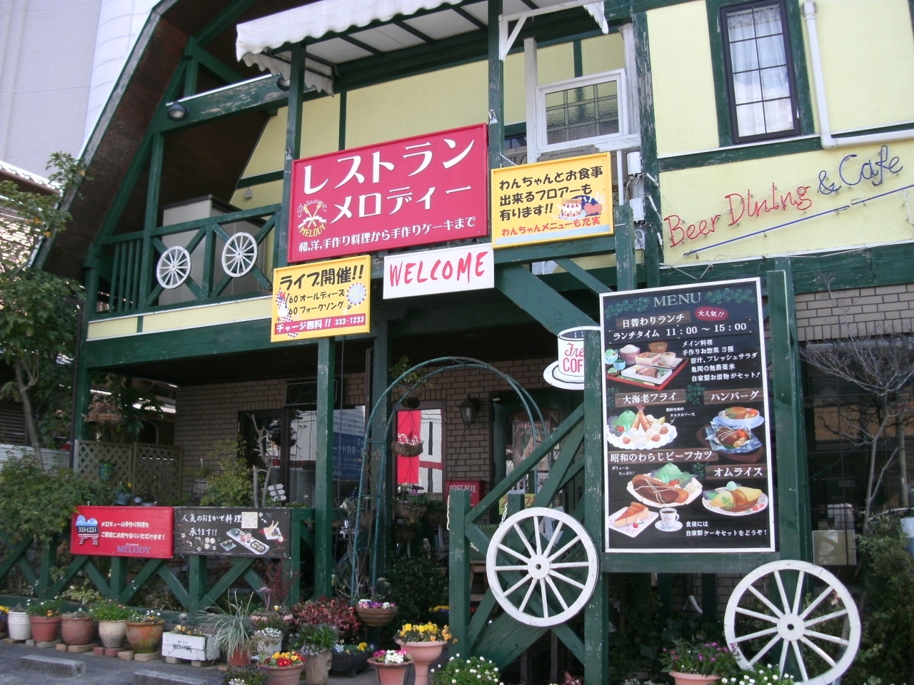 「レストラン メロディー」さんは、国道9号線の中山の信号を南に200mほど入ったところにあります。外観は木や花でいっぱいでおしゃれな感じです。店内の壁の周りには、ビートルズやプレスリーなどのLPや欧米のナンバープレート、標識などが飾ってあり、アメリカンな雰囲気。ほとんどの人がランチメニューを頼んでいたので、色んな中から“ハンバーグセット”をオーダー、豚汁とお漬物とご飯とサラダのセットです。ボリュームもあり、美味しく頂きました。わんちゃん同伴OKの店ですが、その席は限定されているので、犬が苦手な人でも大丈夫だと思います。